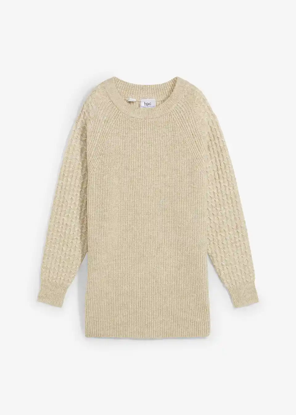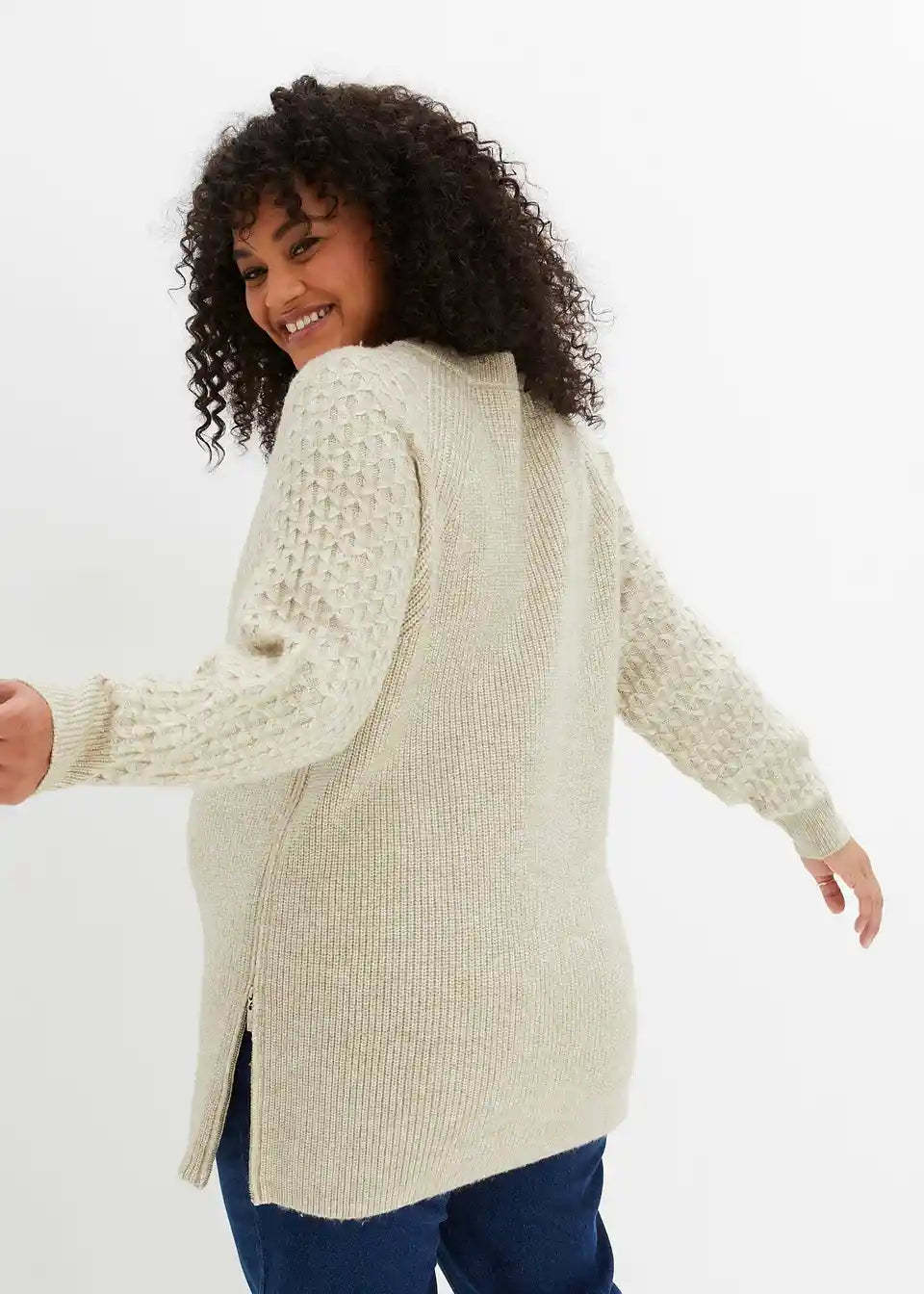 Weicher Strickpullover für die Schwangerschaft und Stillzeit. An den Seiten befinden sich Schlitze mit Reißverschlüssen, die ein bequemes Stillen für Mutter und Kind ermöglichen.