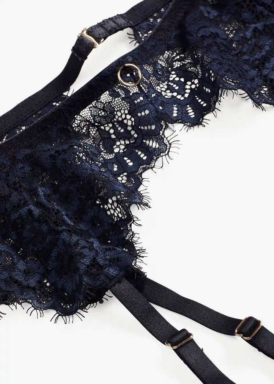 Strapshalter aus zarter Eyelash Spitze und recyceltem Polyamid.