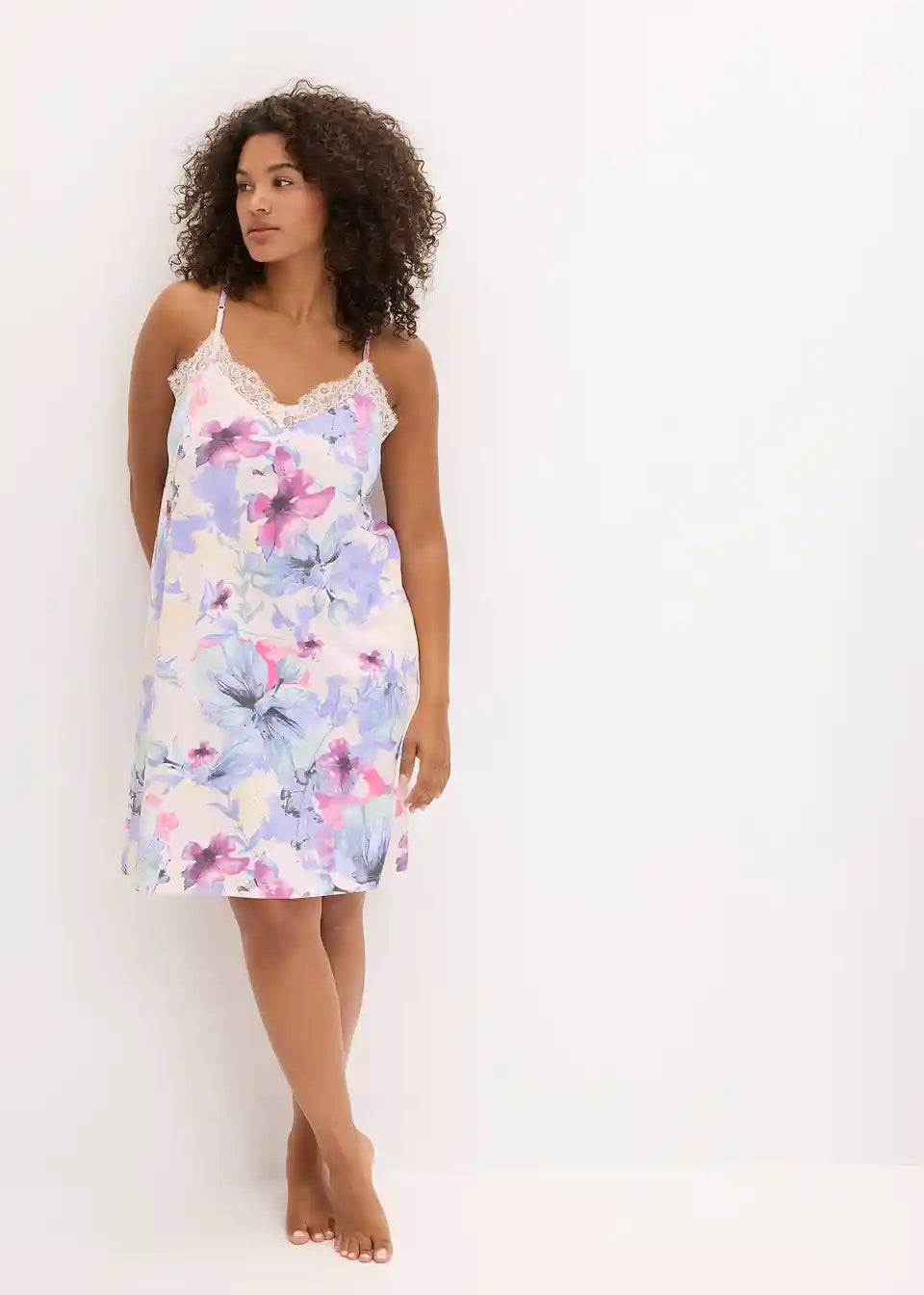 Kurzes Spaghetti Nachthemd in leichter A-Form mit femininer Spitze