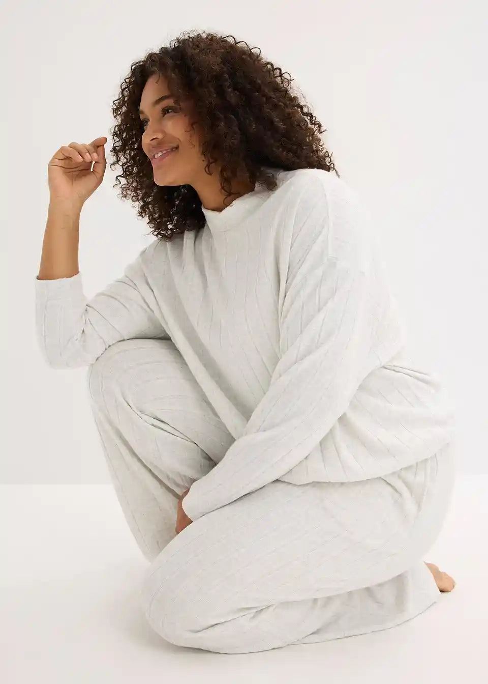 Weit geschnittener Loungewear Hausanzug aus weicher Rippe