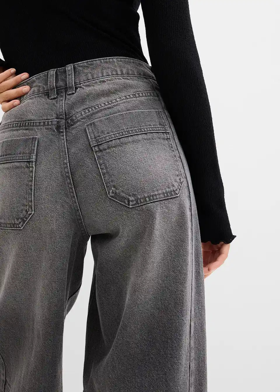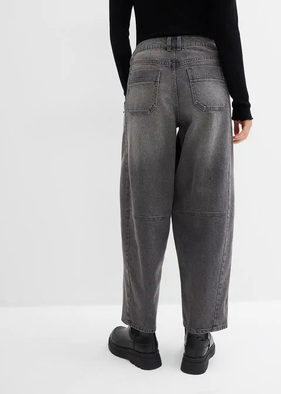 5-Pocket-Jeans aus einem festen Baumwolldenim, der sich zunächst etwas steif anfühlt und durch häufiges Tragen weicher und lockerer wird. Lockerer Passform mit voluminösem, gerundetem Bein von Hüfte bis Oberschenkel und schmal zulaufendem Schnitt abwärts. Mittlerer Bundhöhe.