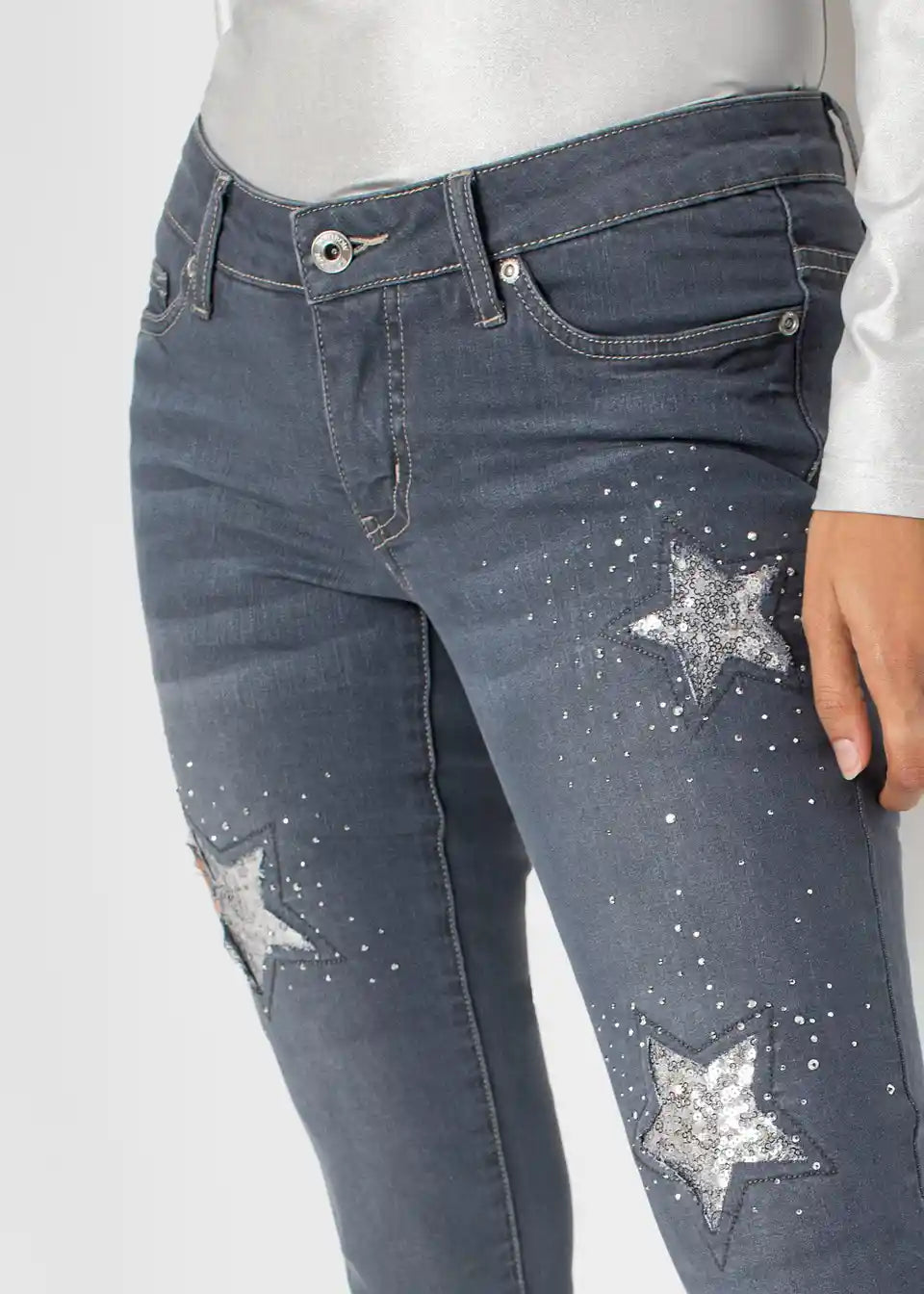 Trendy Skinny-Jeans mit Pailletten und Sternen-Details