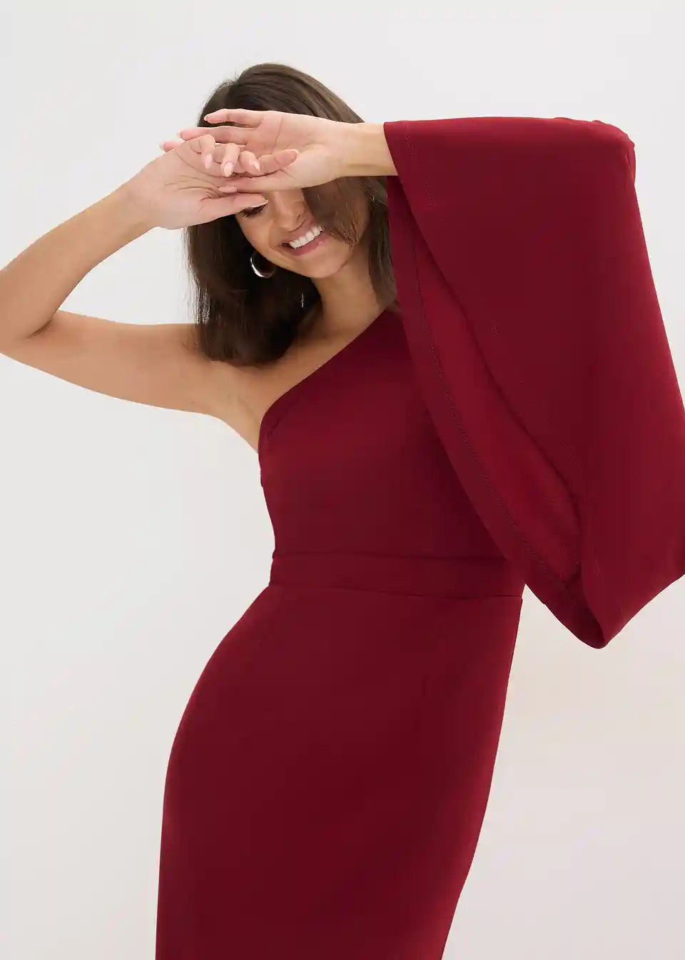 Elegant und feminin: Maxikleid mit One-Shoulder-Ausschnitt und Trompeten-Ärmel