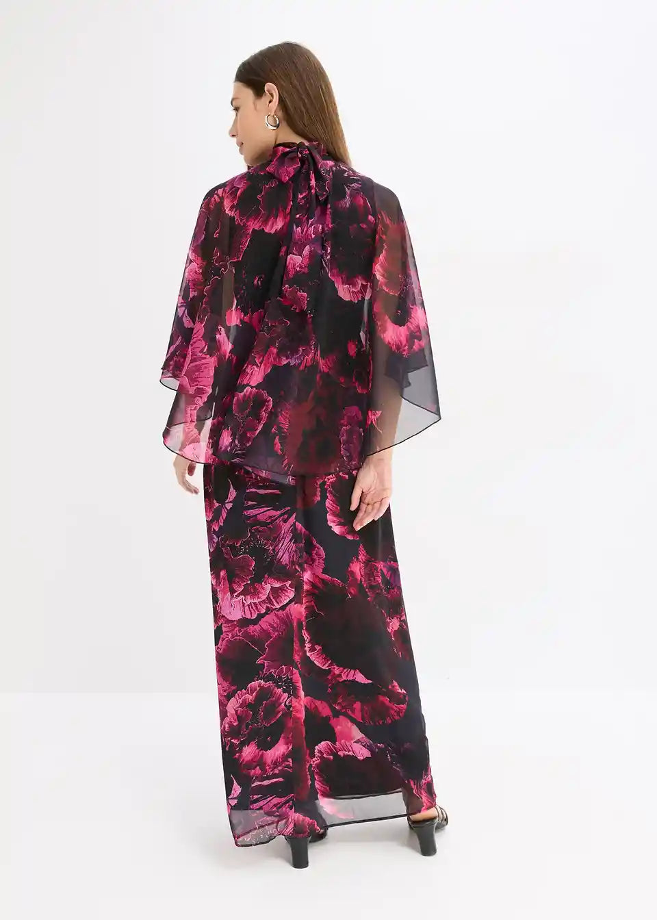 Romantisch und feminin: Abendkleid in Maxi-Länge aus feinem Chiffon mit Überwurf und Stehkragen mit Binde-Detail