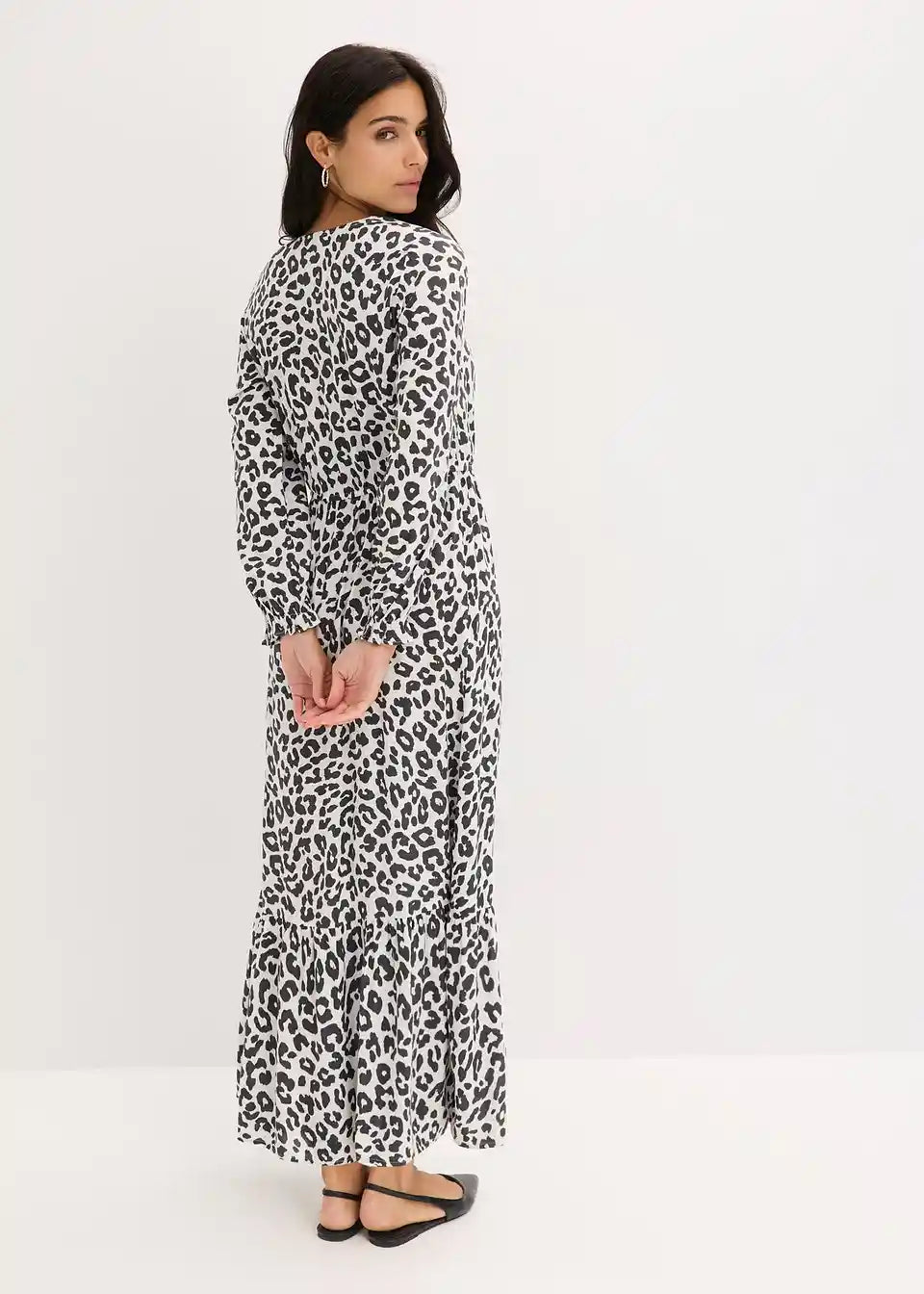 Langes Kleid mit Volants und Bindeband am Ausschnitt