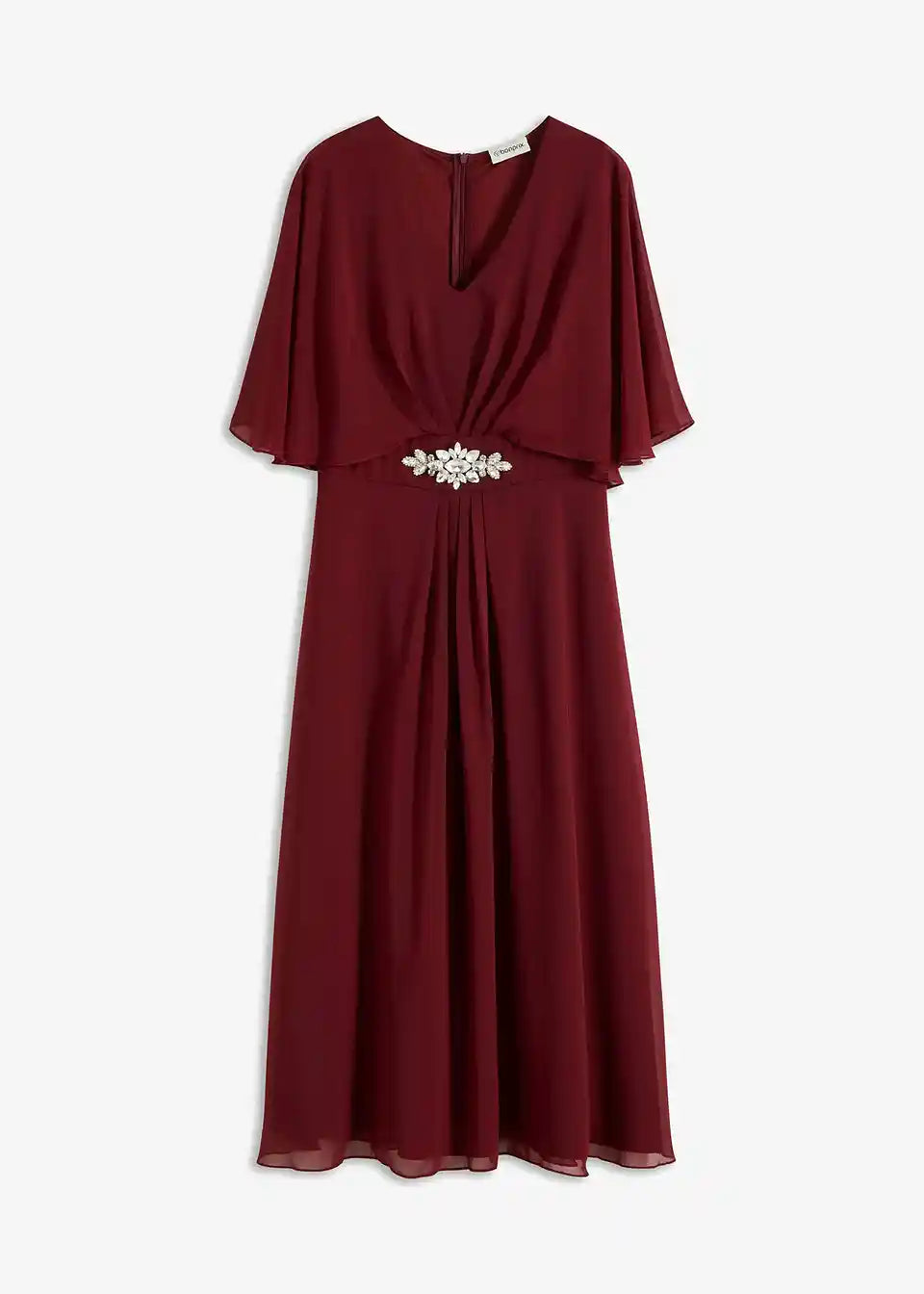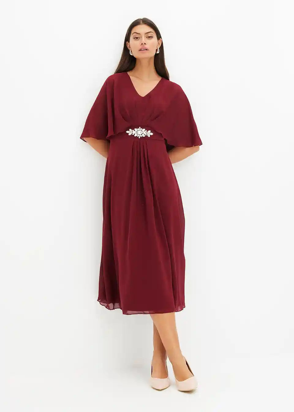 Weitschwingendes Midikleid aus feinem Chiffon mit einer Strasssteinapplikation in der Taille