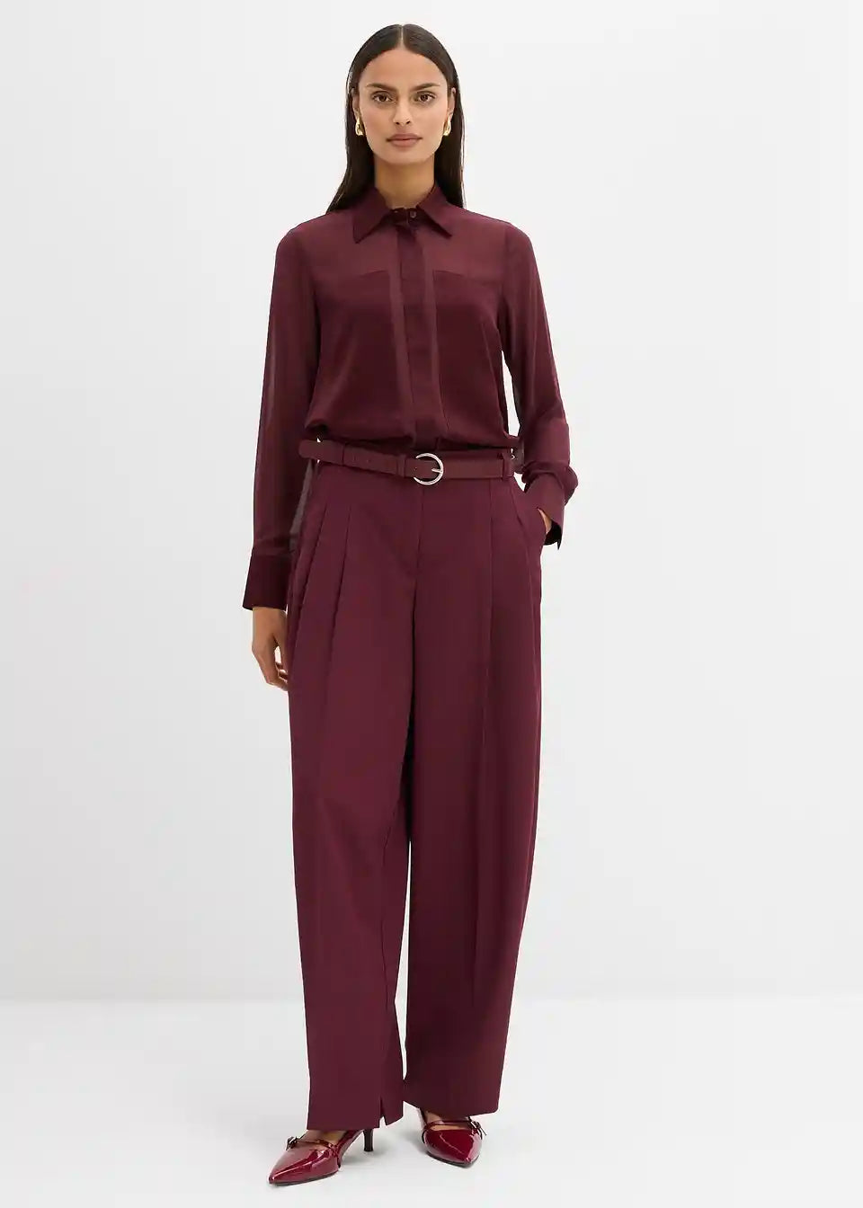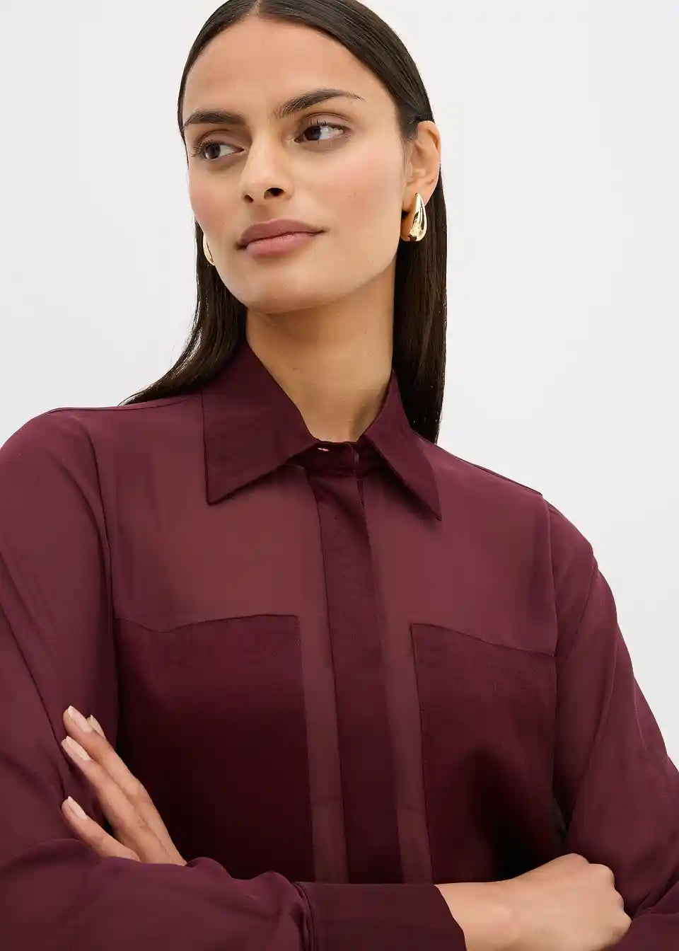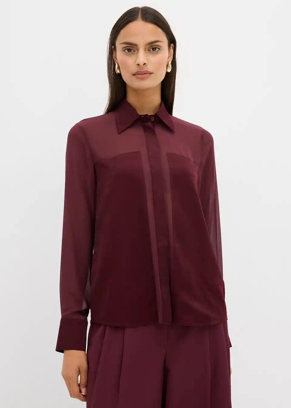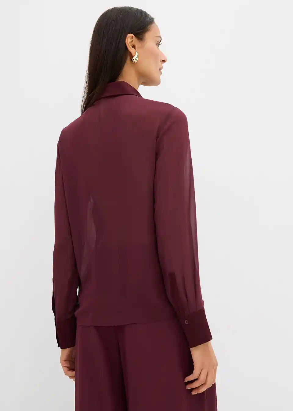 Gerade geschnittene Bluse aus fließendem Stoff mit Hemdkragen, geknöpften langen Ärmeln sowie Knopfverschluss vorne