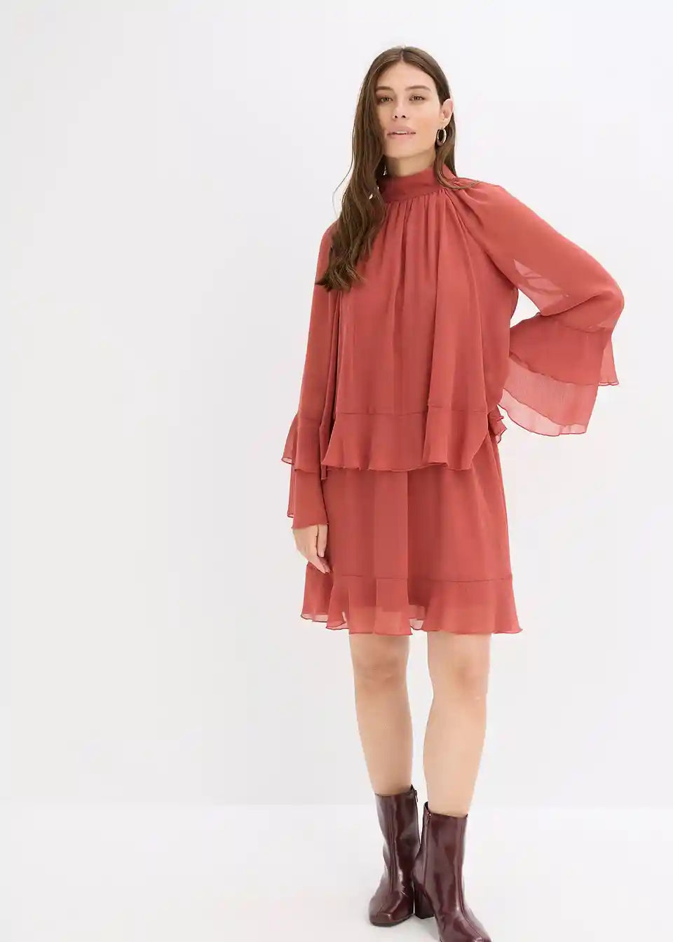 modisches weit geschnittenes Chiffonkleid mit Volants