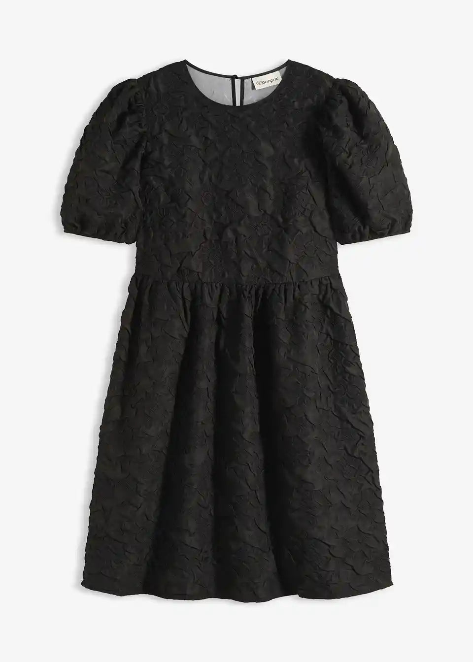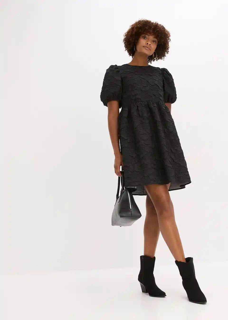 kurzes Kleid mit Puffärmeln aus modischem Jacquard-Material