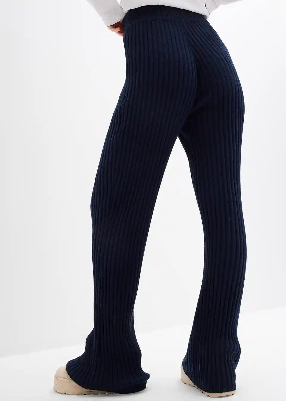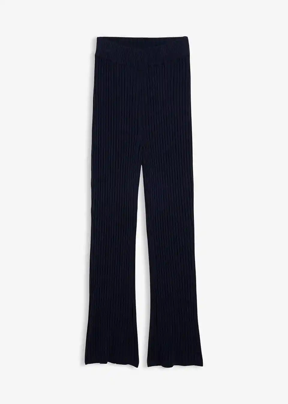 Hoch tailliertes Hosenmodell mit schmalen Rippbund und verdecktem Gummizug.