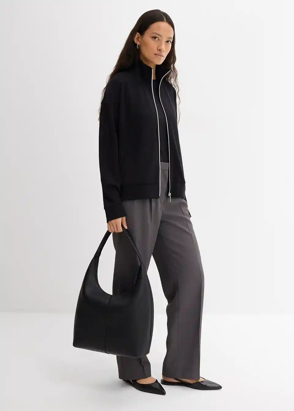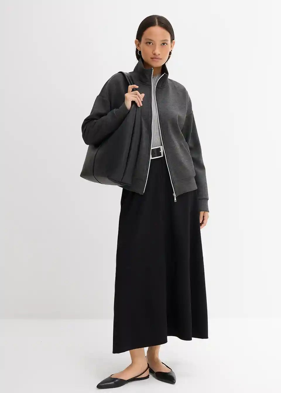 Oversize Jacke aus Scuba mit Stehkragen, Frontreißverschluss, überschnittenen Schultern und Leistentaschen vorne