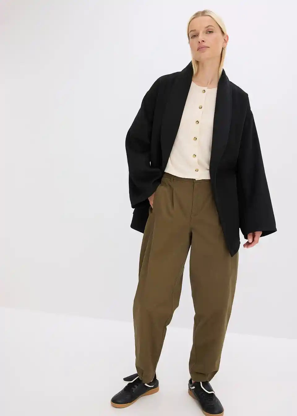 Das Studio Model ist 1,78 m groß und trägt Größe 36.