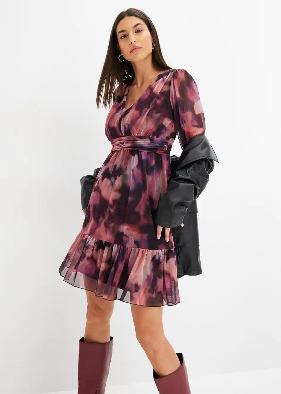 modisches Mesh-Kleid mir Ballonärmeln