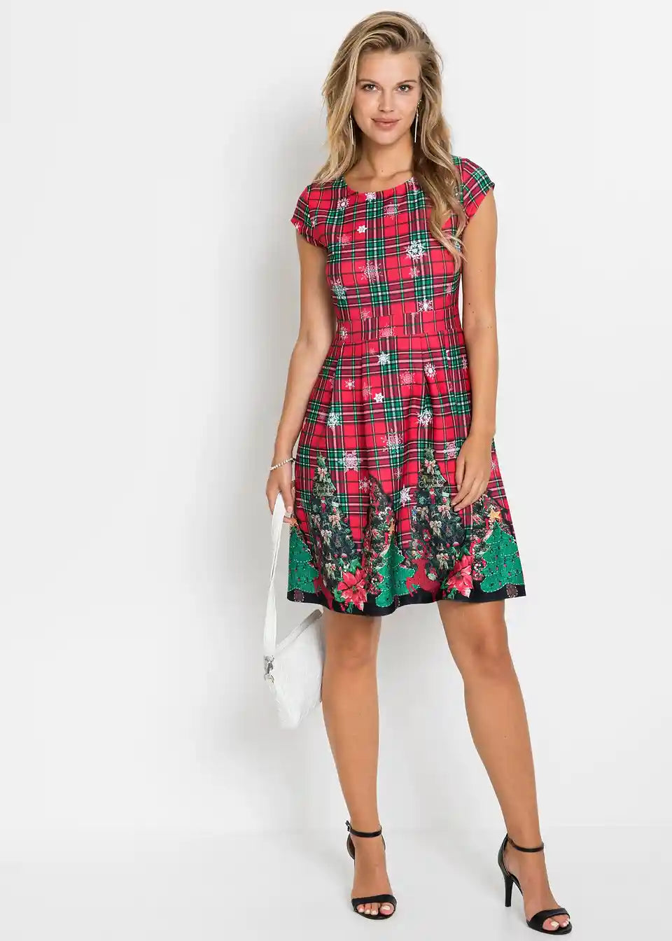 Geschmackvolles, kurzes Kleid passend für die Weihnachtszeit. Länge in Größe 36/38 ca. 94cm.
