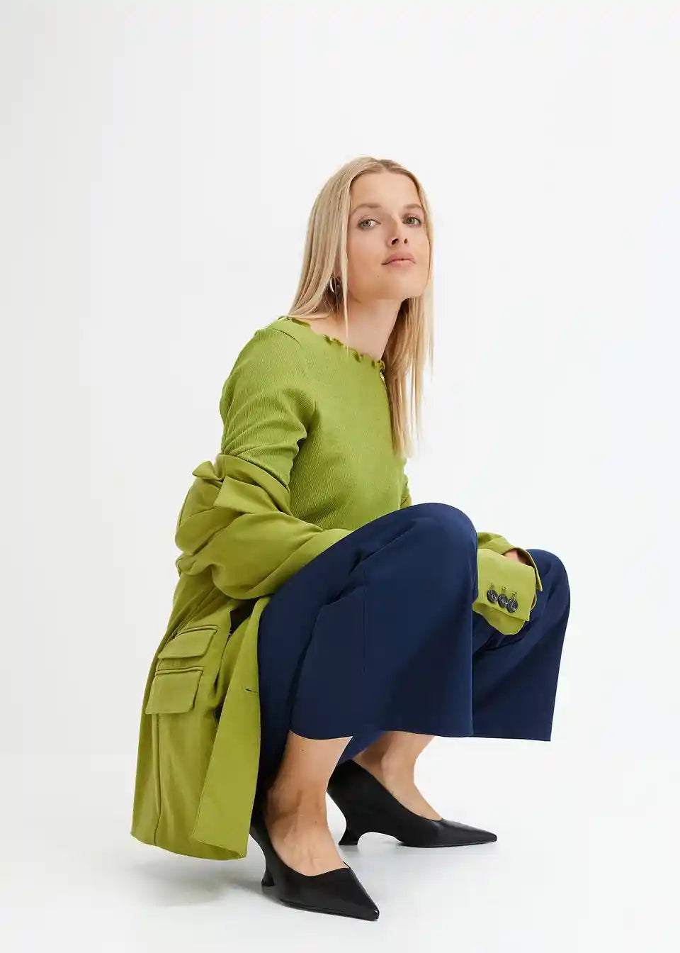 Moderne Twillhose mit hohem Bund und ausgestelltem Bein