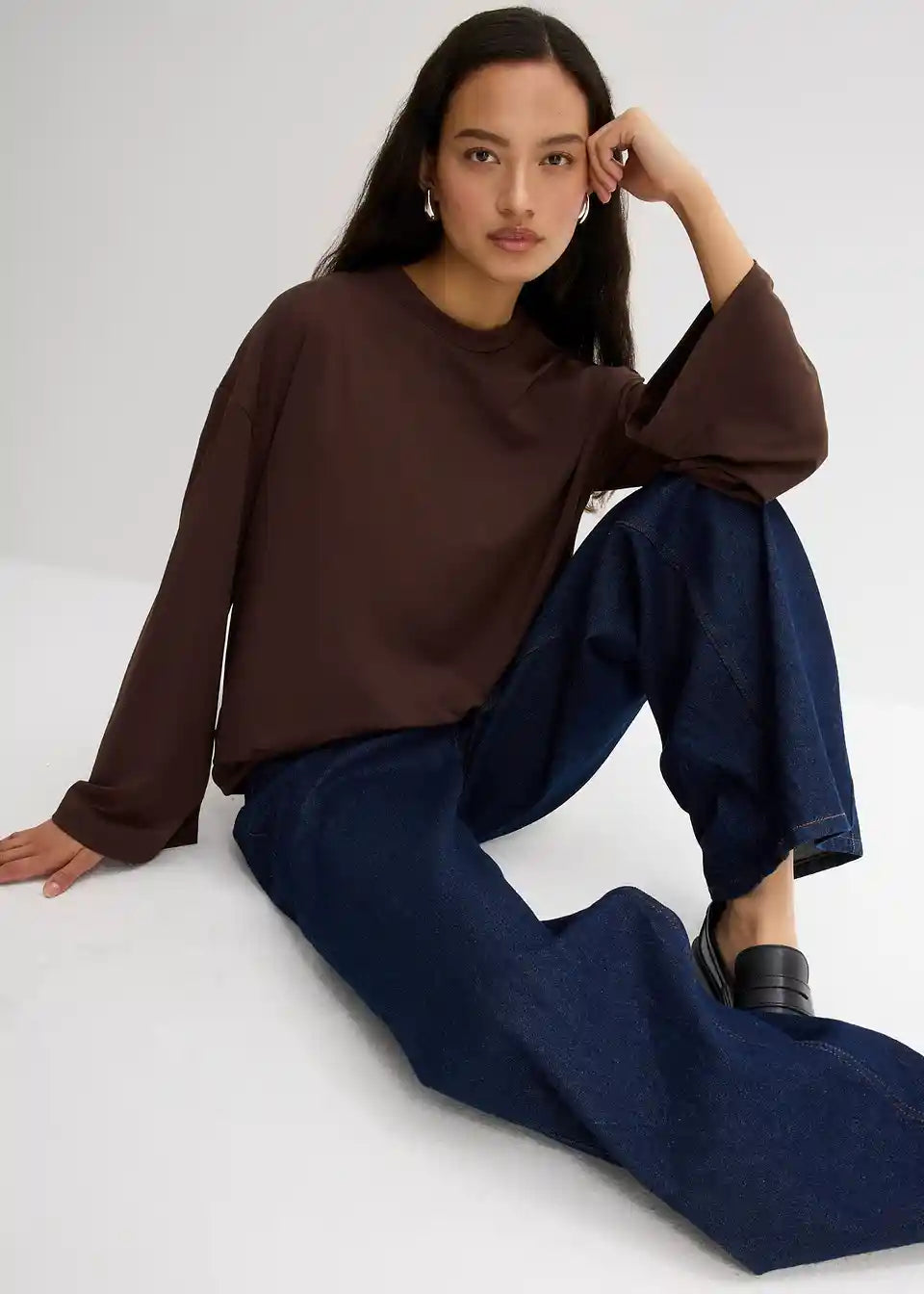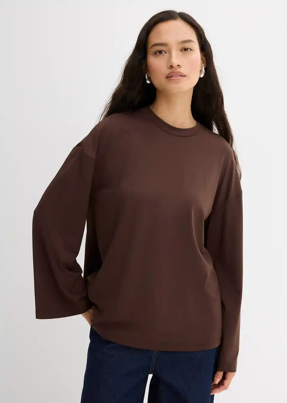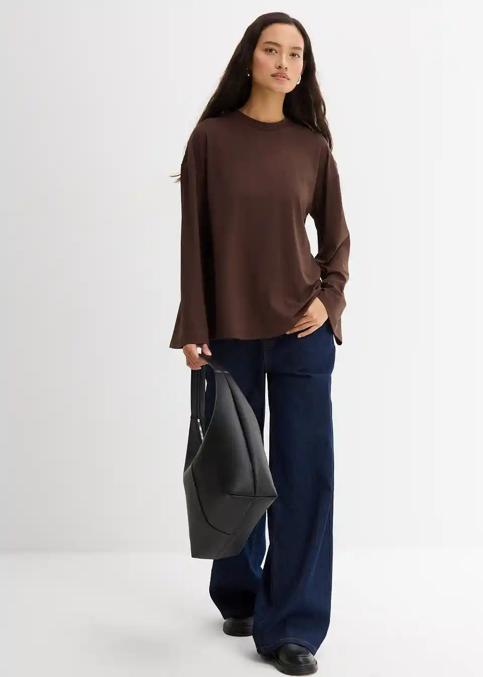 Langarmshirt mit Rundhalsausschnitt sowie langen weiten Ärmeln