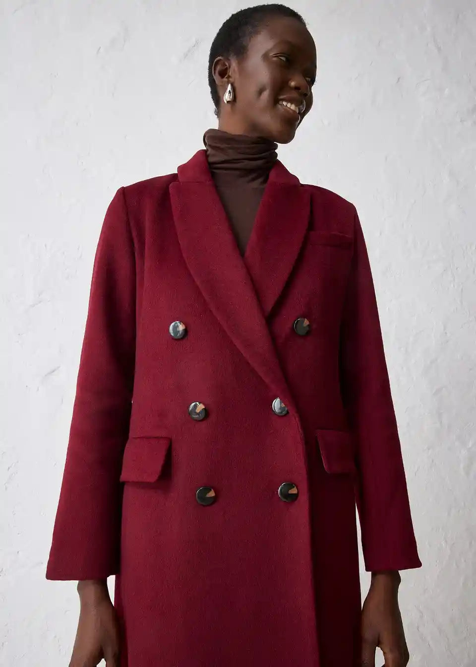 Material:Obermaterial: 50% Wolle, 30% Polyester (recycelt), 15% Polyester, 5% sonstige Fasern, Futter: 55% Polyester (recycelt), 45% Viskose