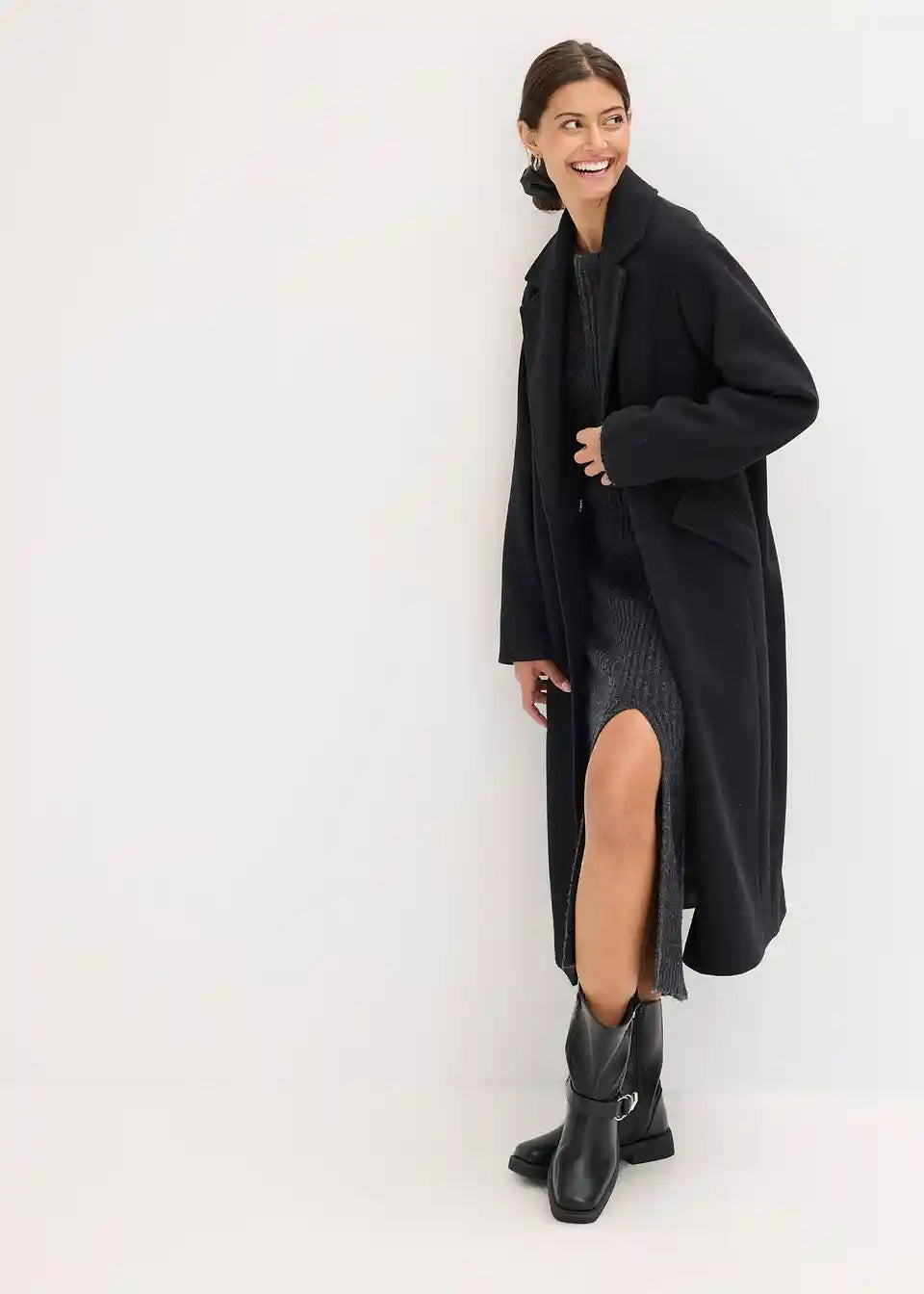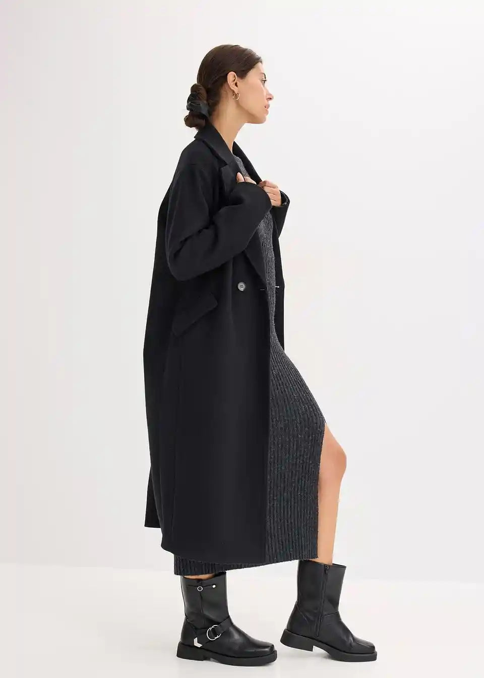 Mantel in Woll-Optik mit breitem Revers