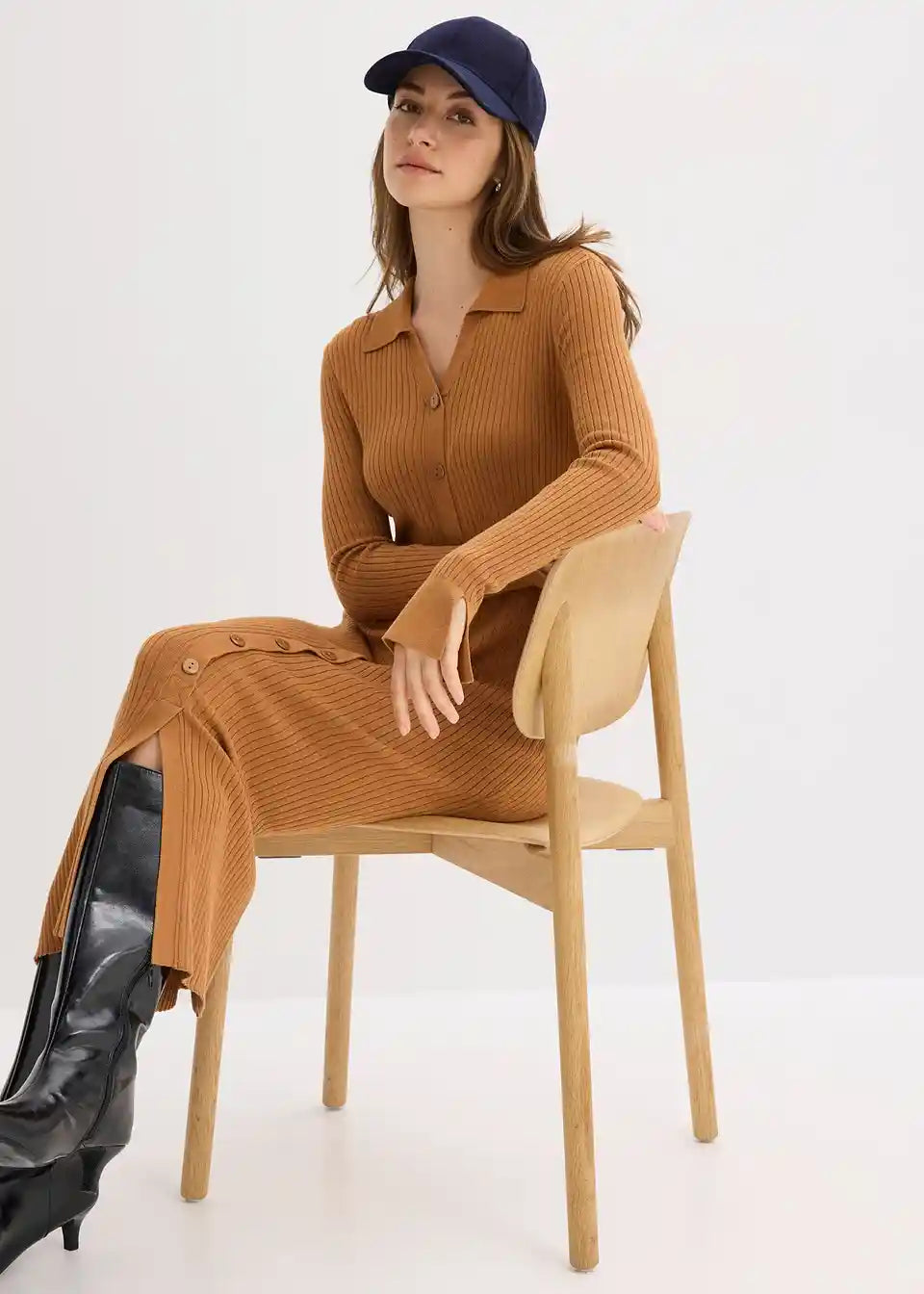 Feminines Strickkleid mit Knopfleiste und Kragen