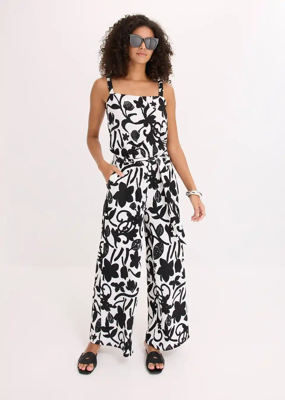 floral bedruckter Jersey-Jumpsuit mit verstellbaren Trägern