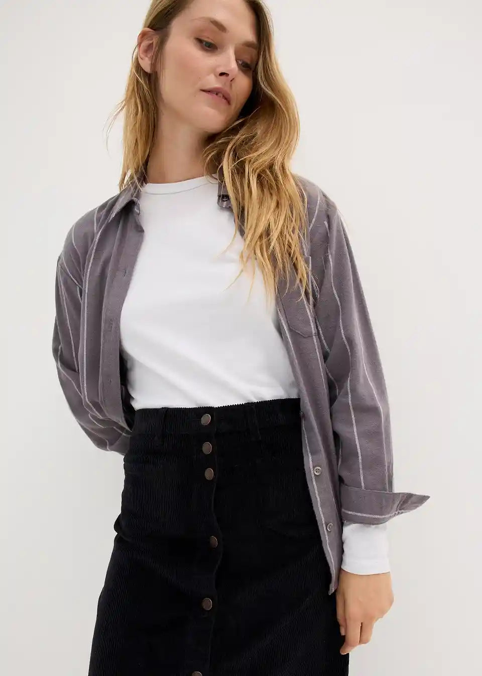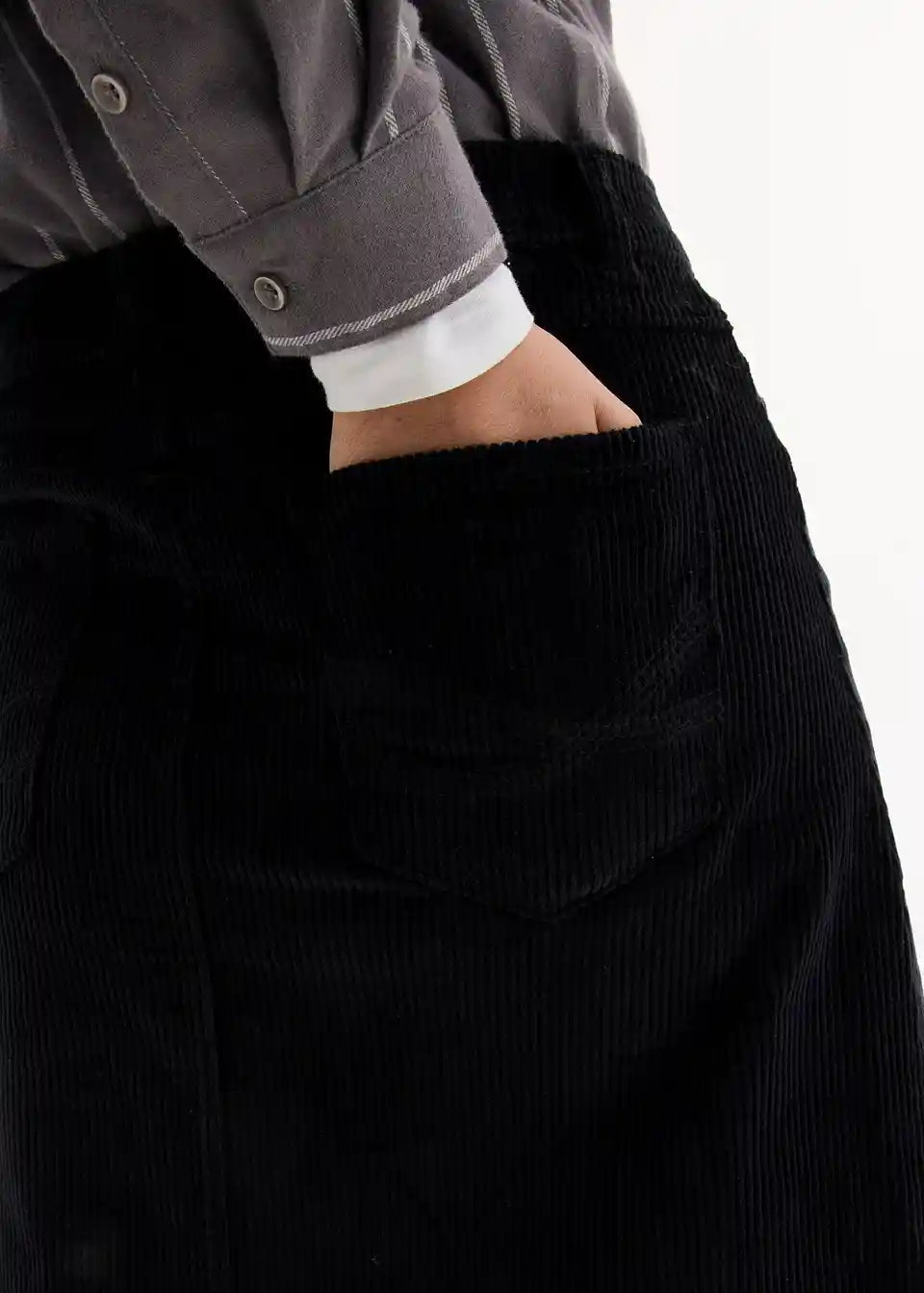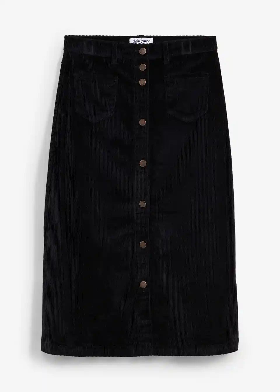 Stretch-Cordrock mit Knopfleiste, Midi-Länge