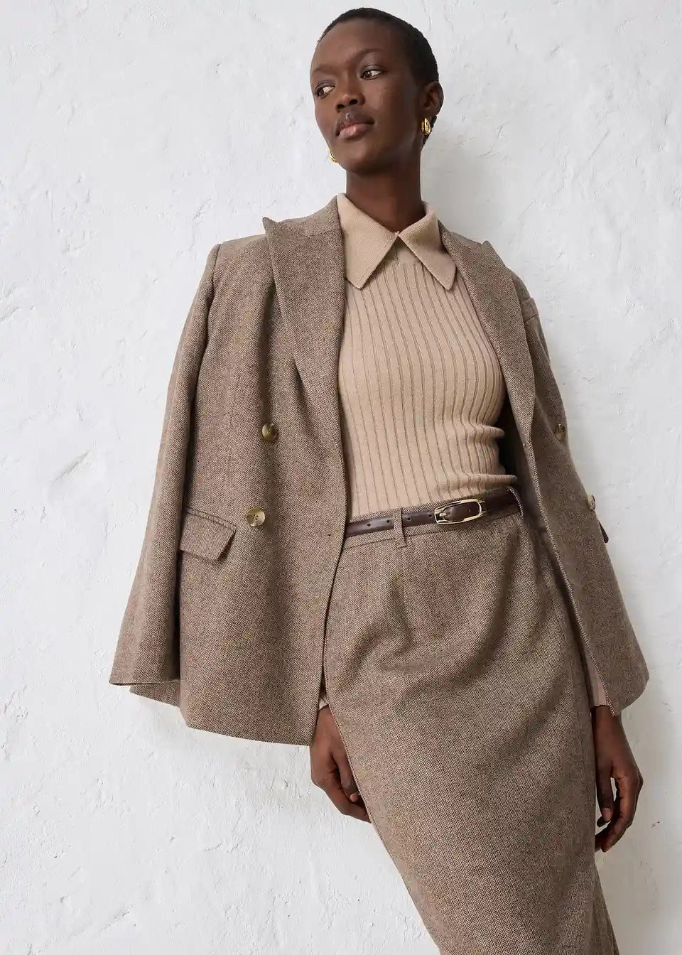 Obermaterial: 50% Wolle, 35% Polyester (recycelt), 15% Viskose, Futter: 55% Polyester (recycelt), 45% Viskose