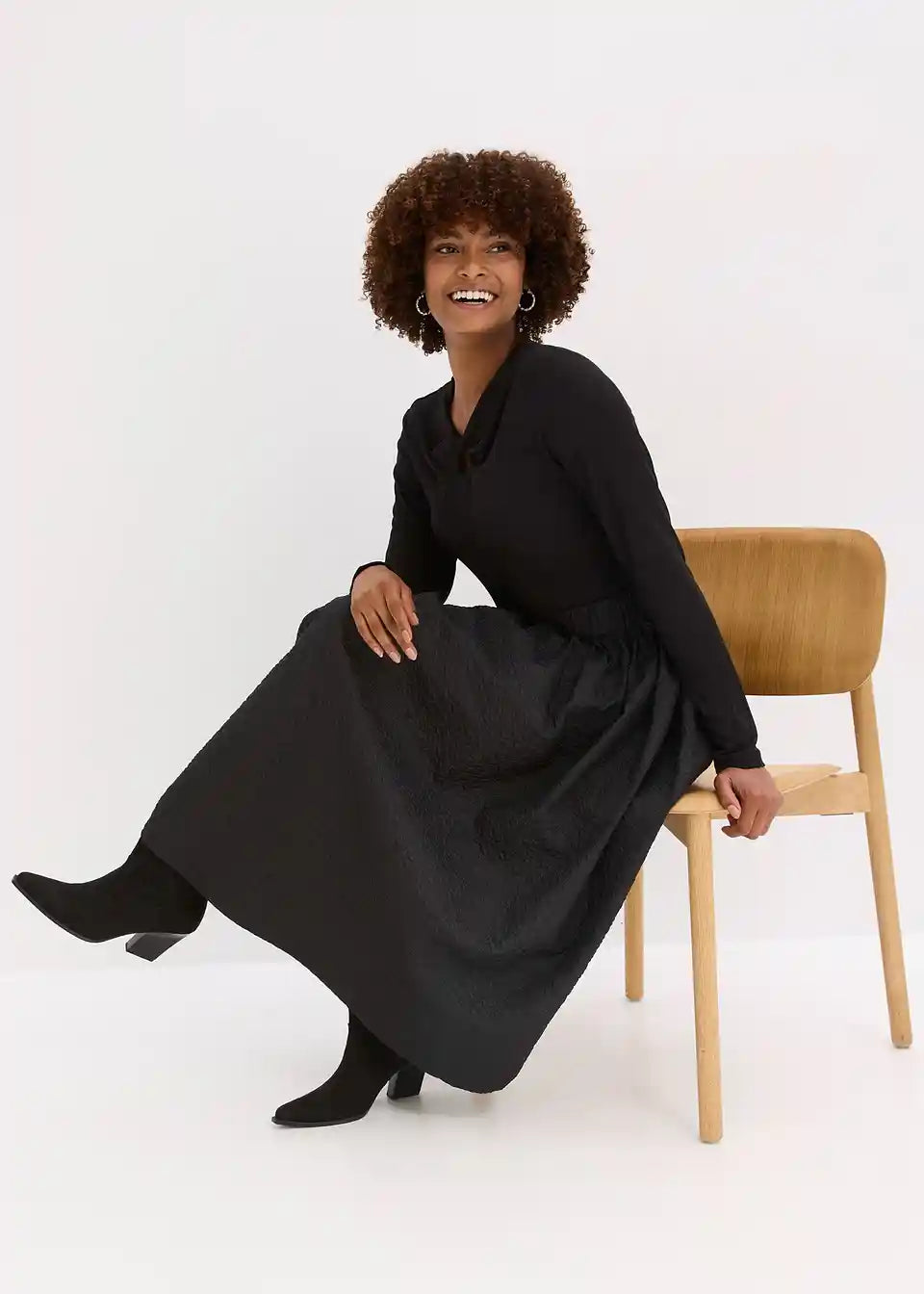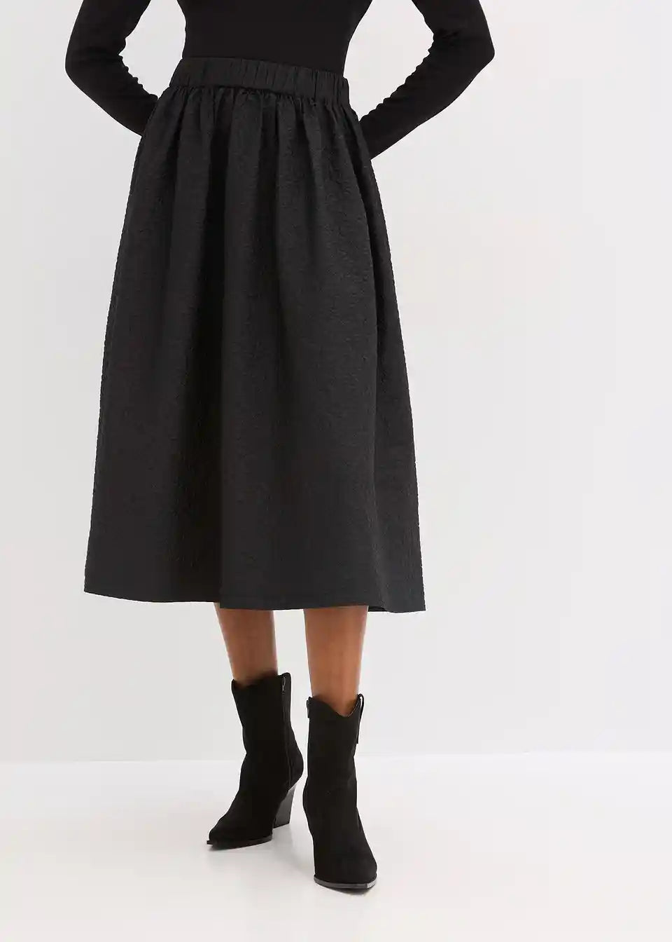Langer Rock mit Bequembund in dezent erhabenem Muster