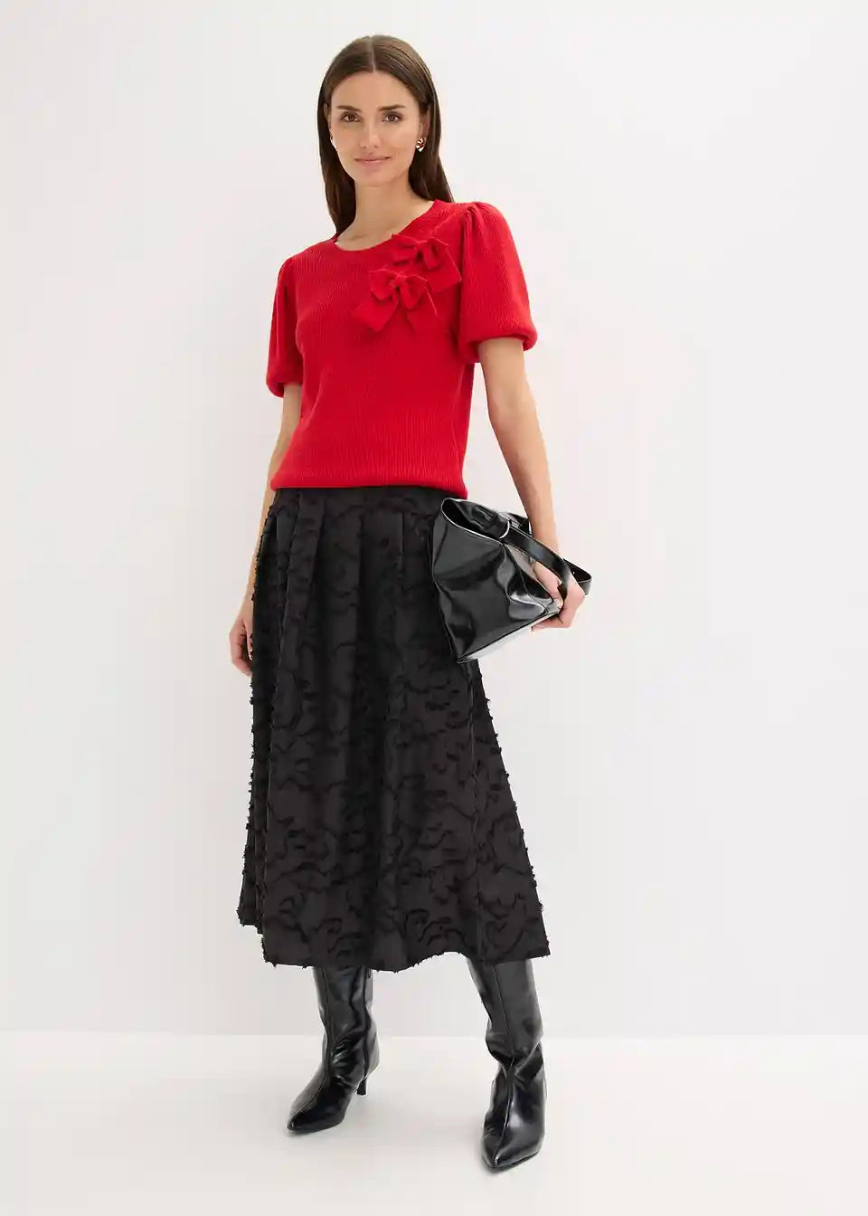 modischer Midirock aus Struktur-Material mit Reißverschluss an der Seite