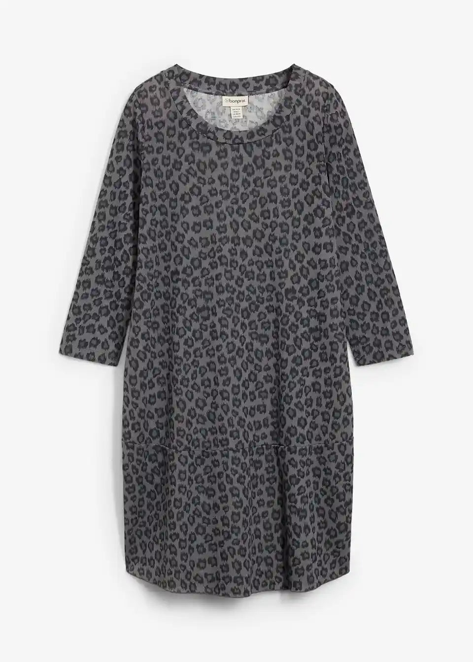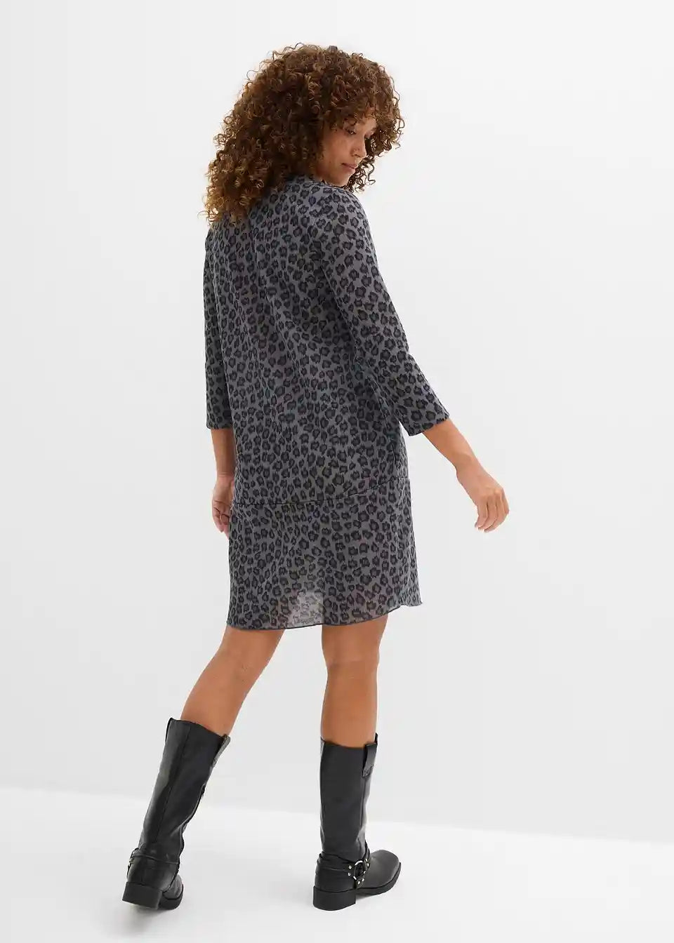 Trendiges Shirtkleid in Strickoptik mit Druck und 3/4 Ärmeln