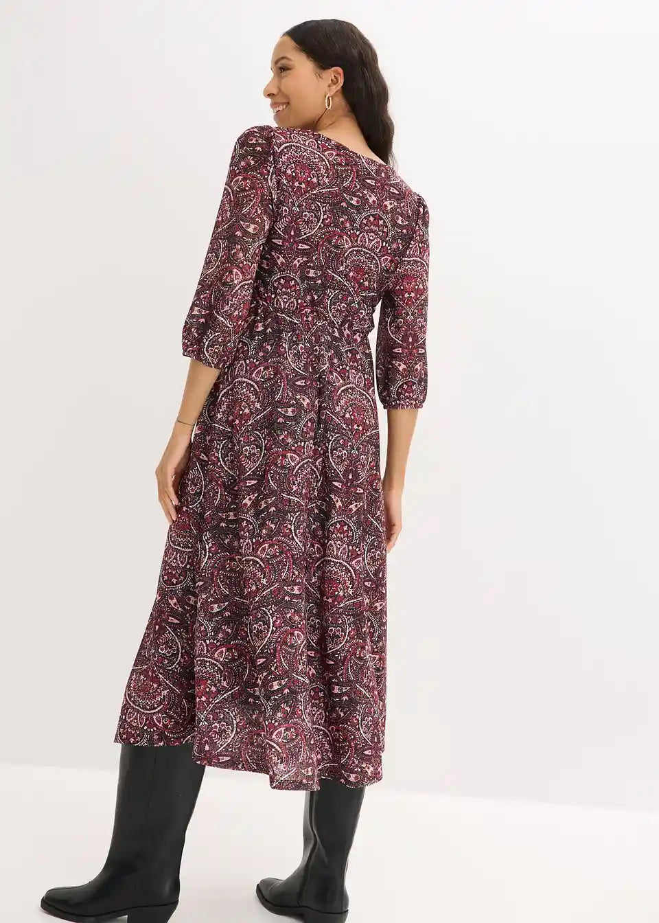 feminines Jerseykleid in Midilänge mit 3/4-Ärmeln