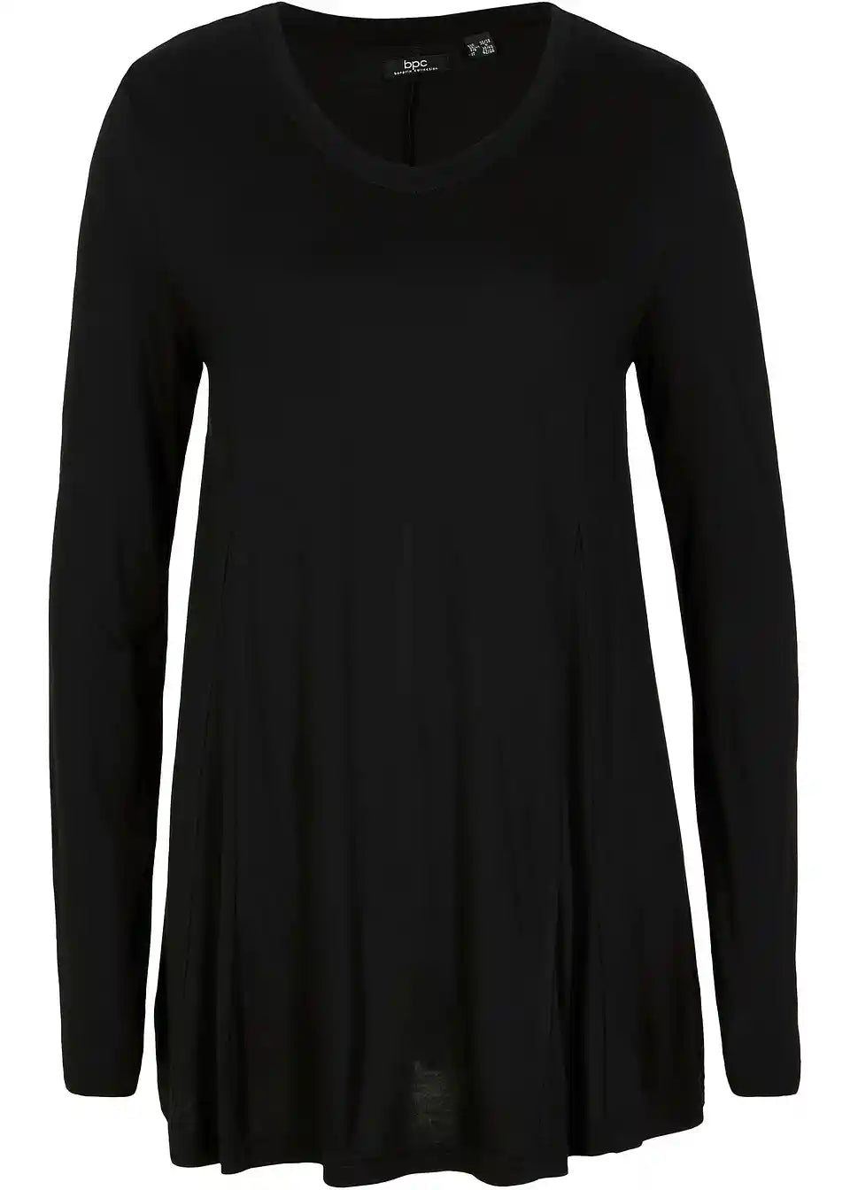 Bauchumspielndes Langarm-Shirt mit hohem V-Ausschnitt aus Viskose