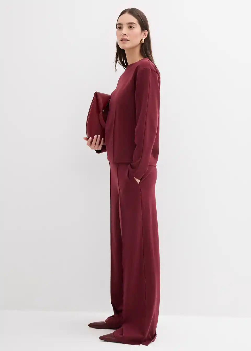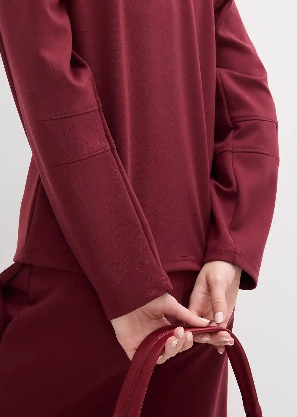 Langarmshirt aus Punto die Roma mit Rundhalsausschnitt sowie Abnähern vorne und an den Ärmeln