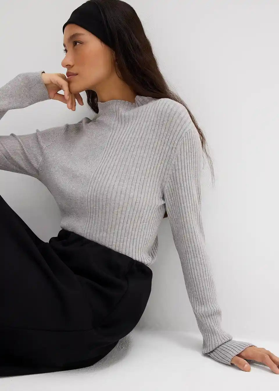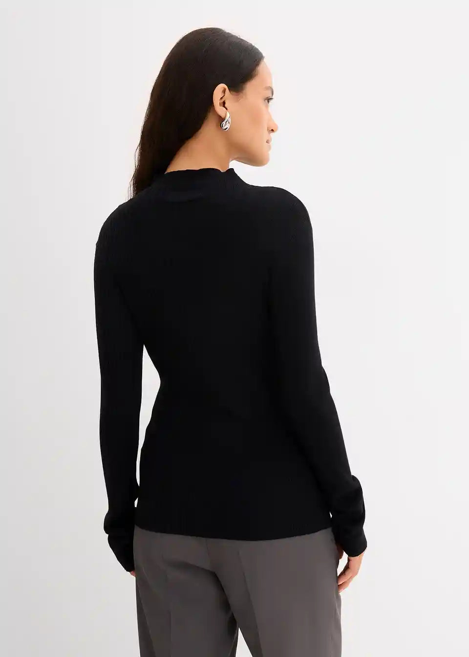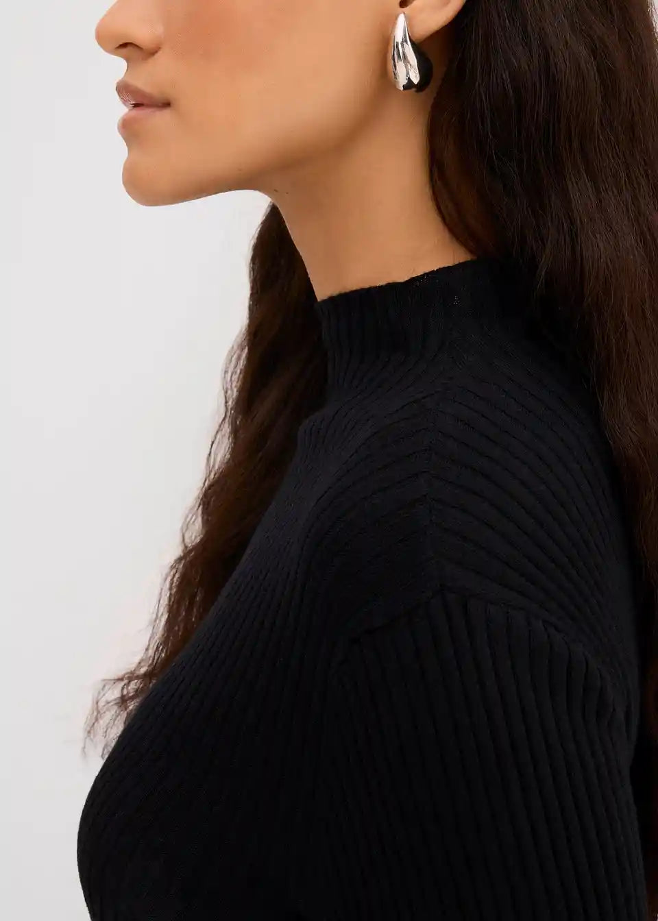 Figurbetontes Langarmshirt mit Rollkragen aus Rippstrick