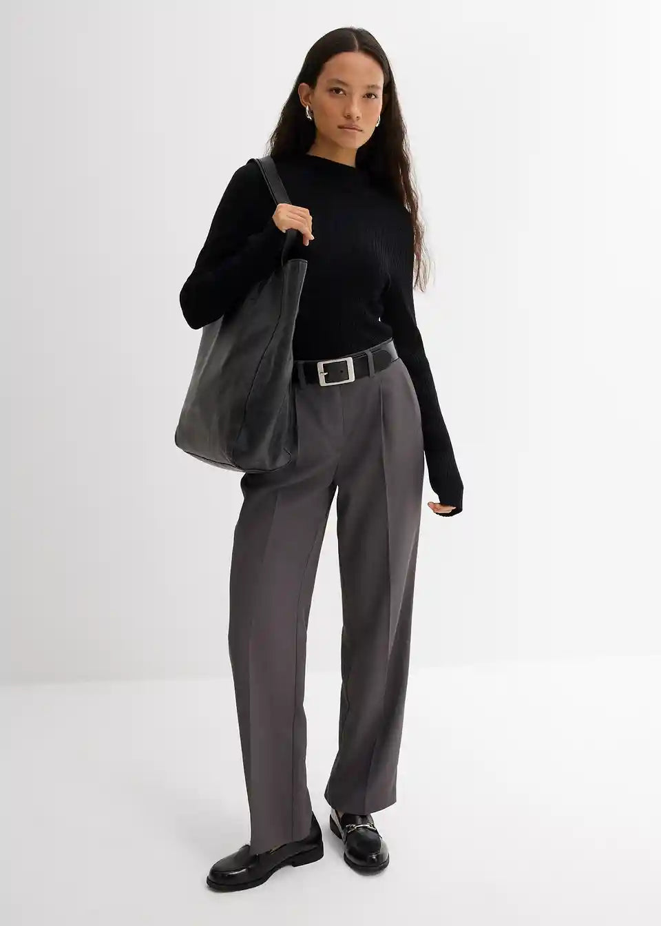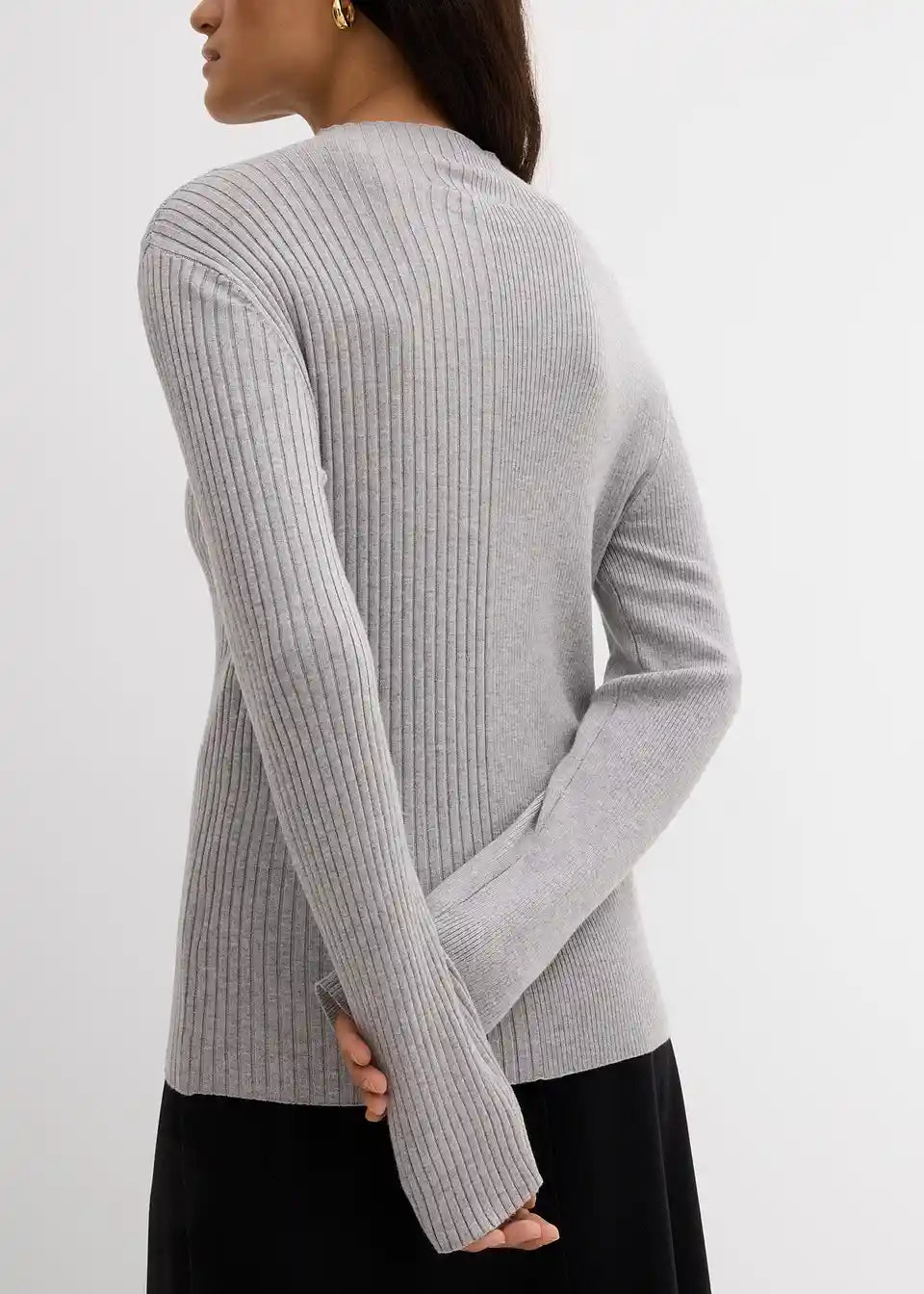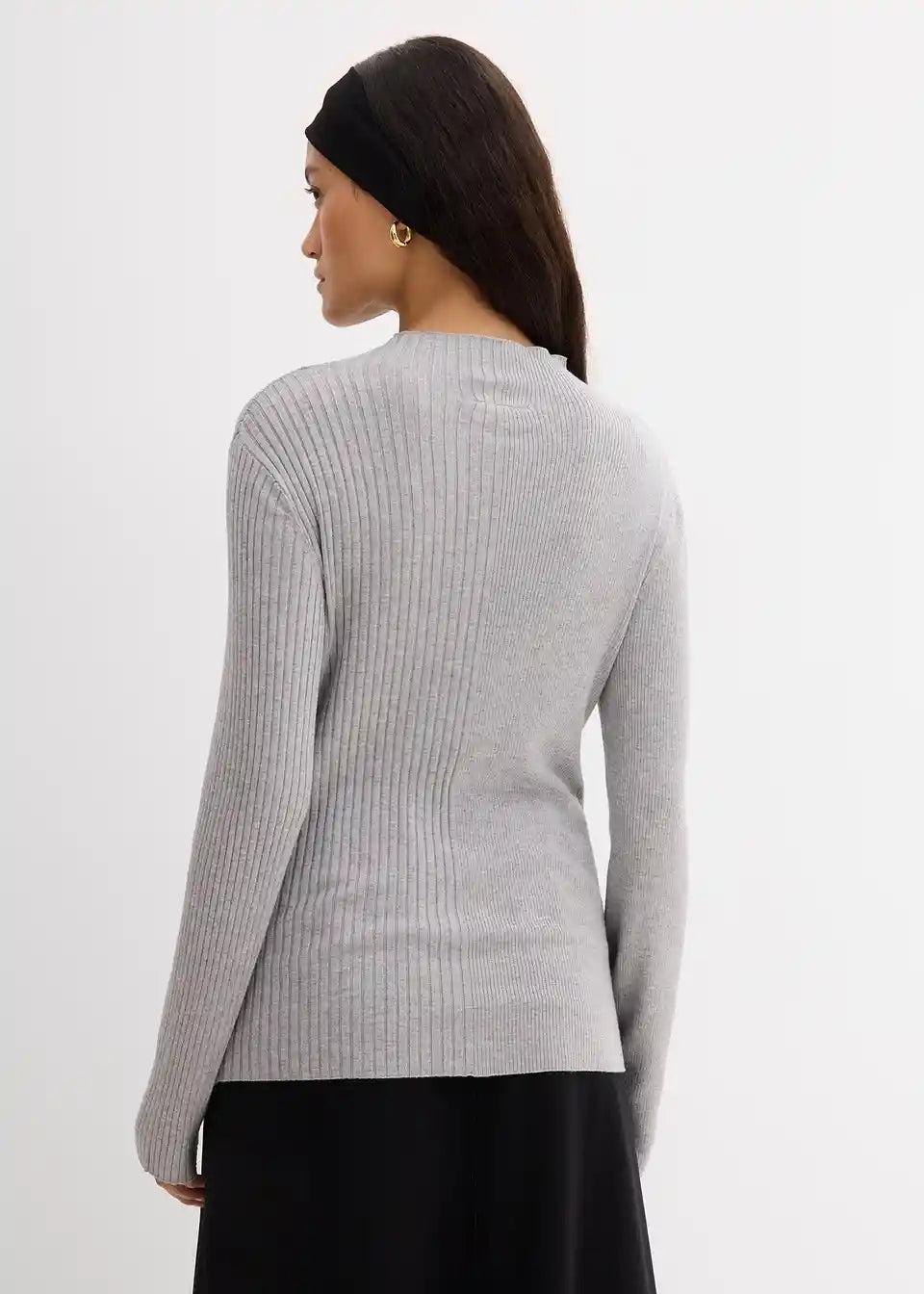 Figurbetontes Langarmshirt mit Rollkragen aus Rippstrick