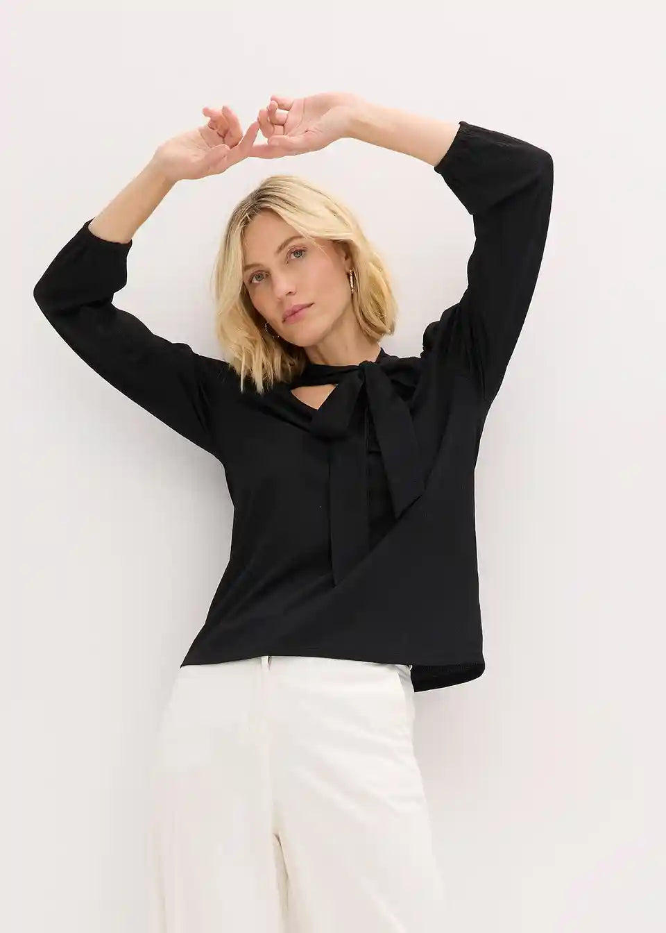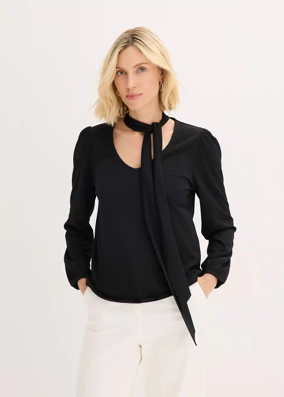 elegantes Struktur-Shirt mit abnehmbarer Schluppe