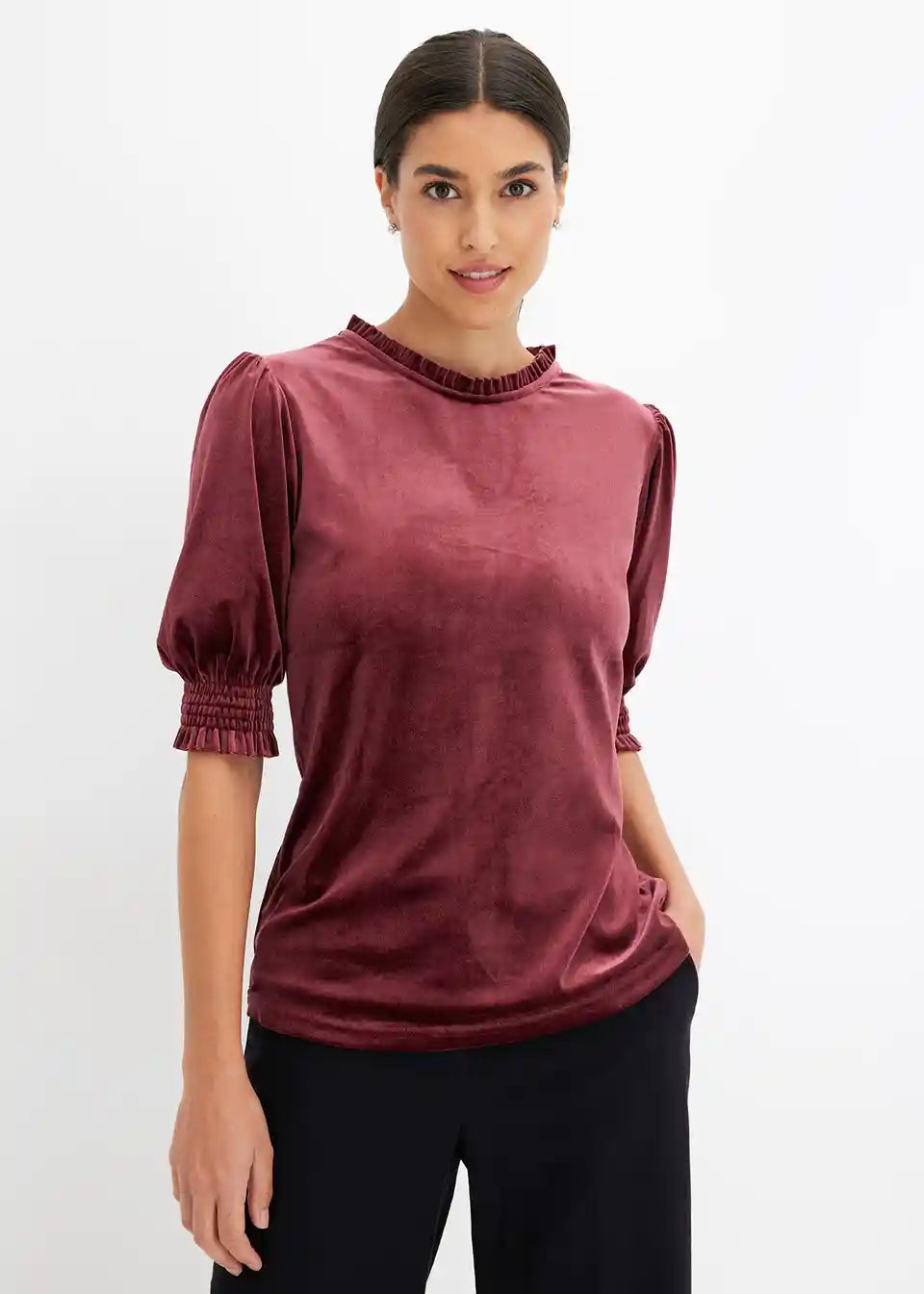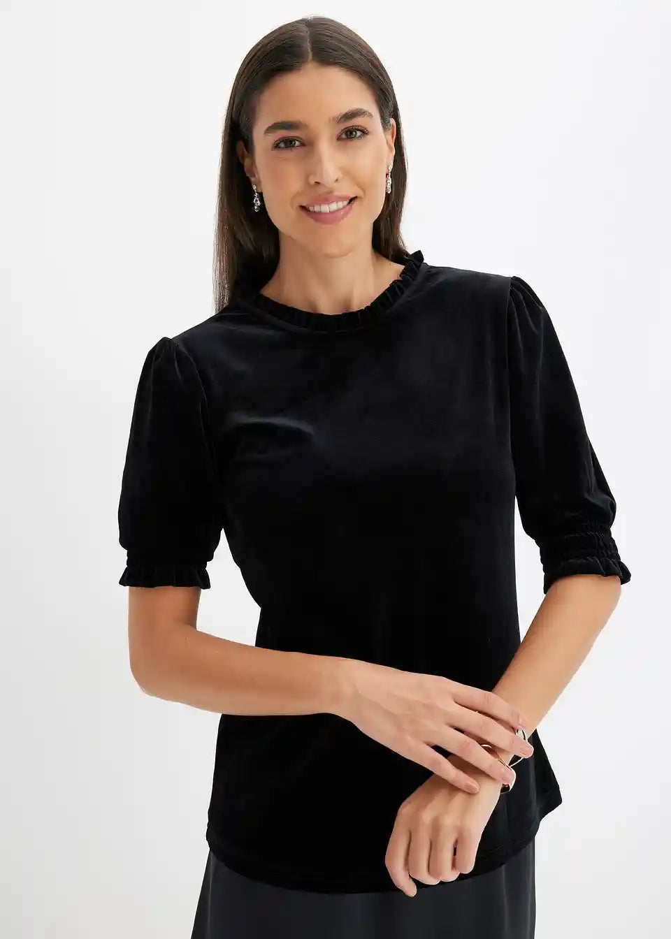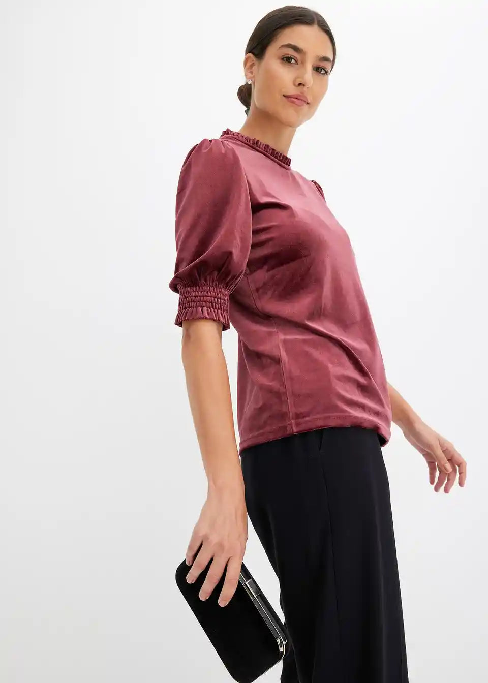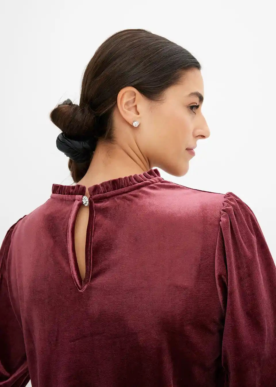 edles Samtshirt mit Strassknopf