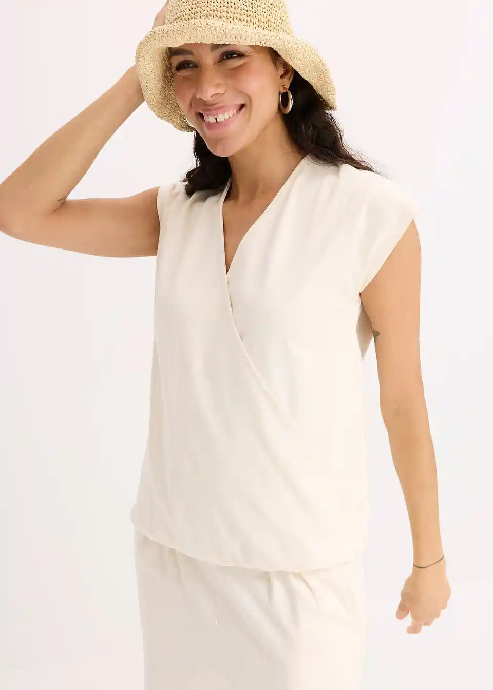 Leichtes Shirt in Wickeloptik mit komfortablem Elastiksaum.
