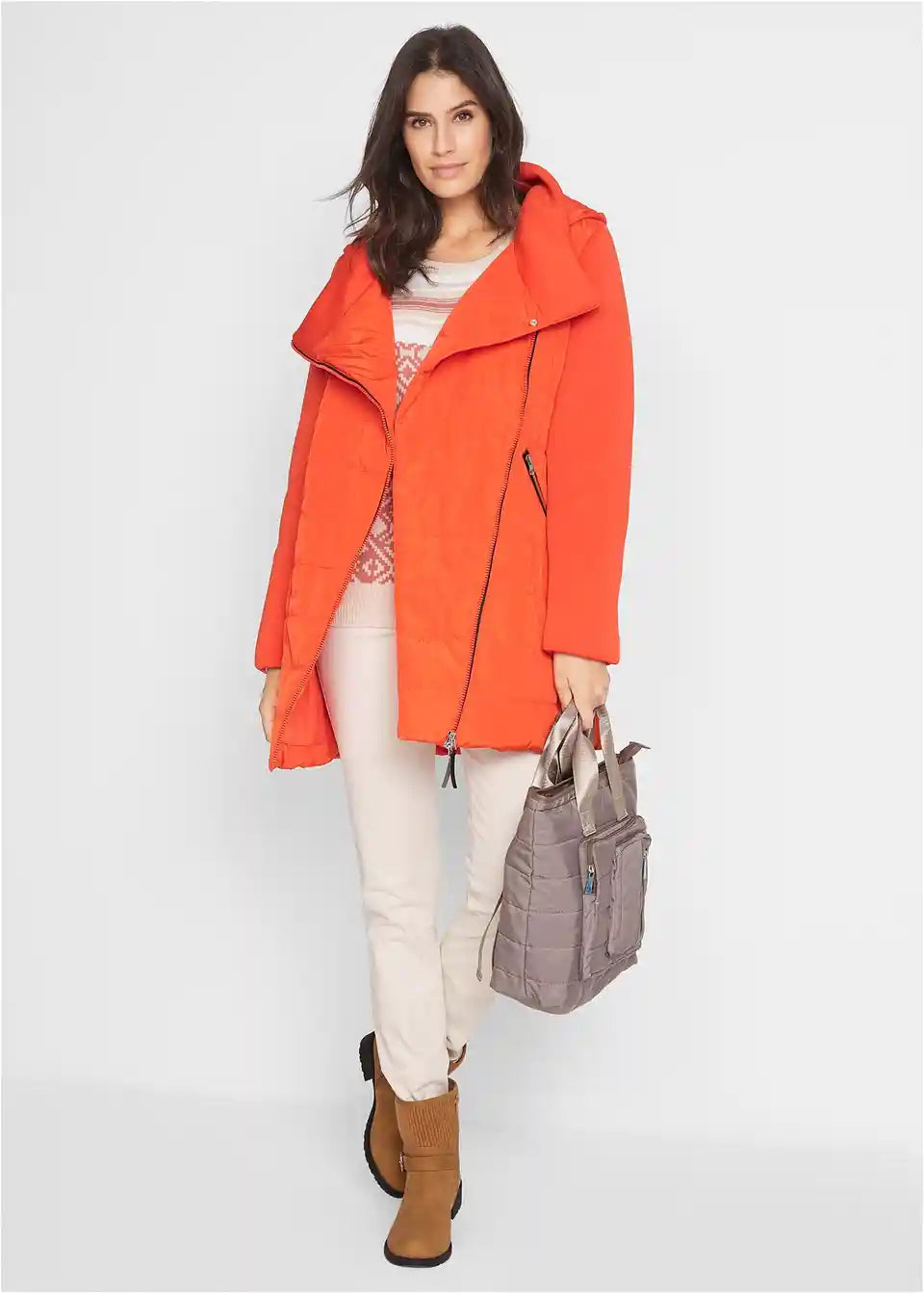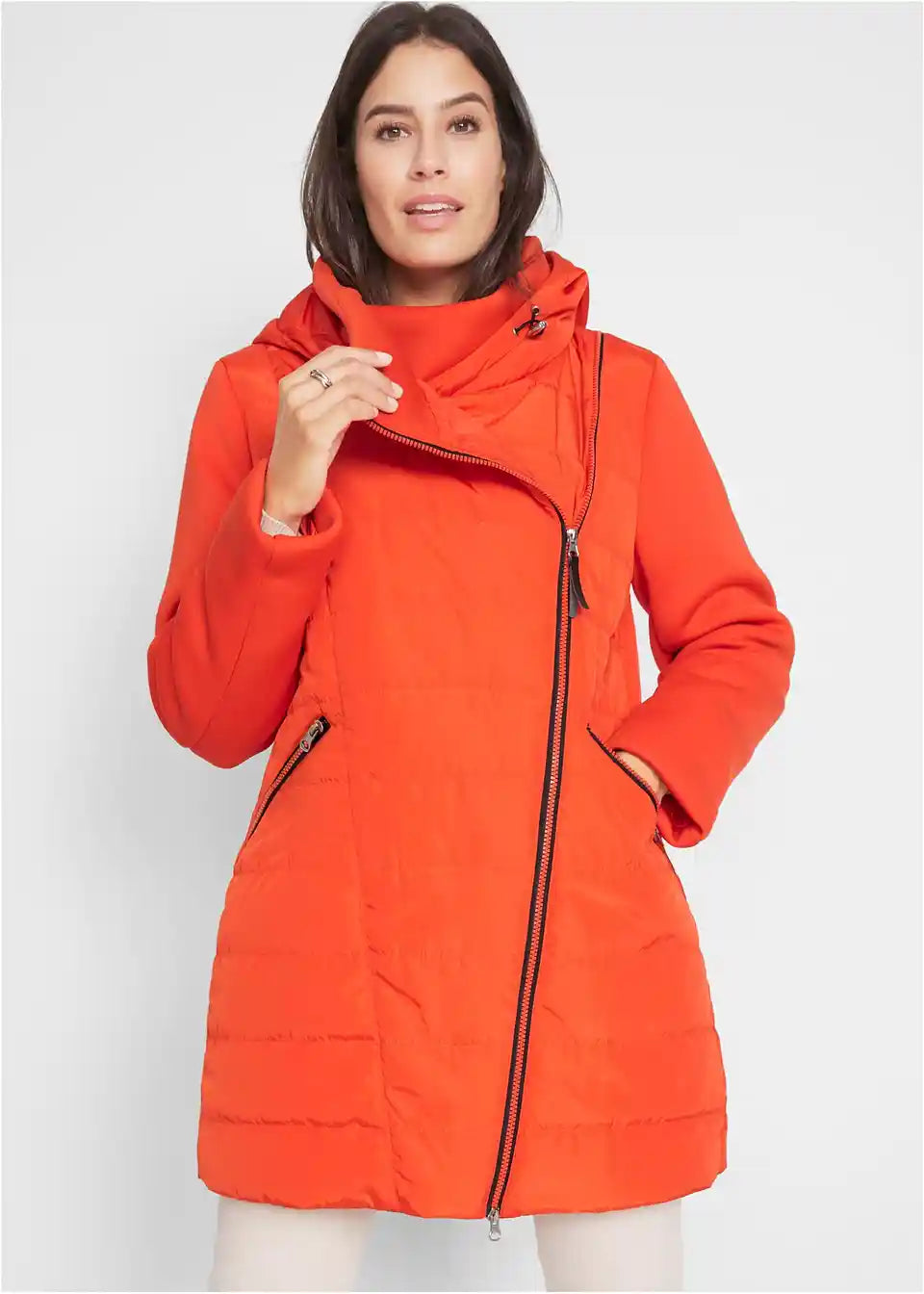Figurschmeichelnde Jacke mit asymmetrischem Reißerverschluss und Ärmeln