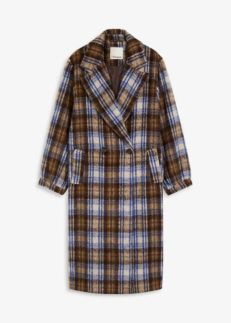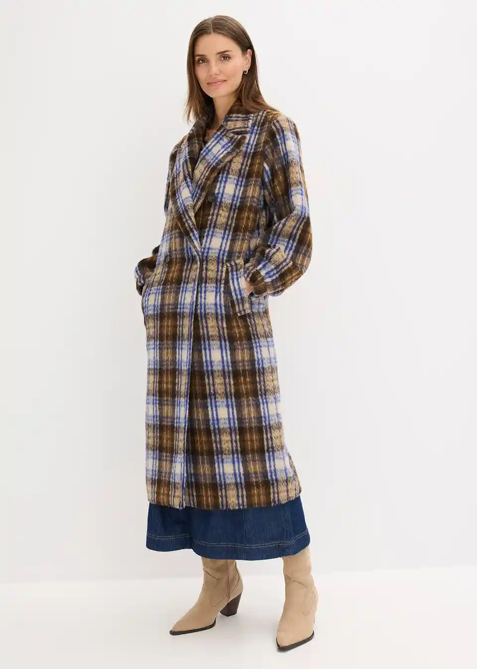 modischer Mantel in Wolloptik mit Ballonärmeln und doppelreihigem Knopfverschluss vorne