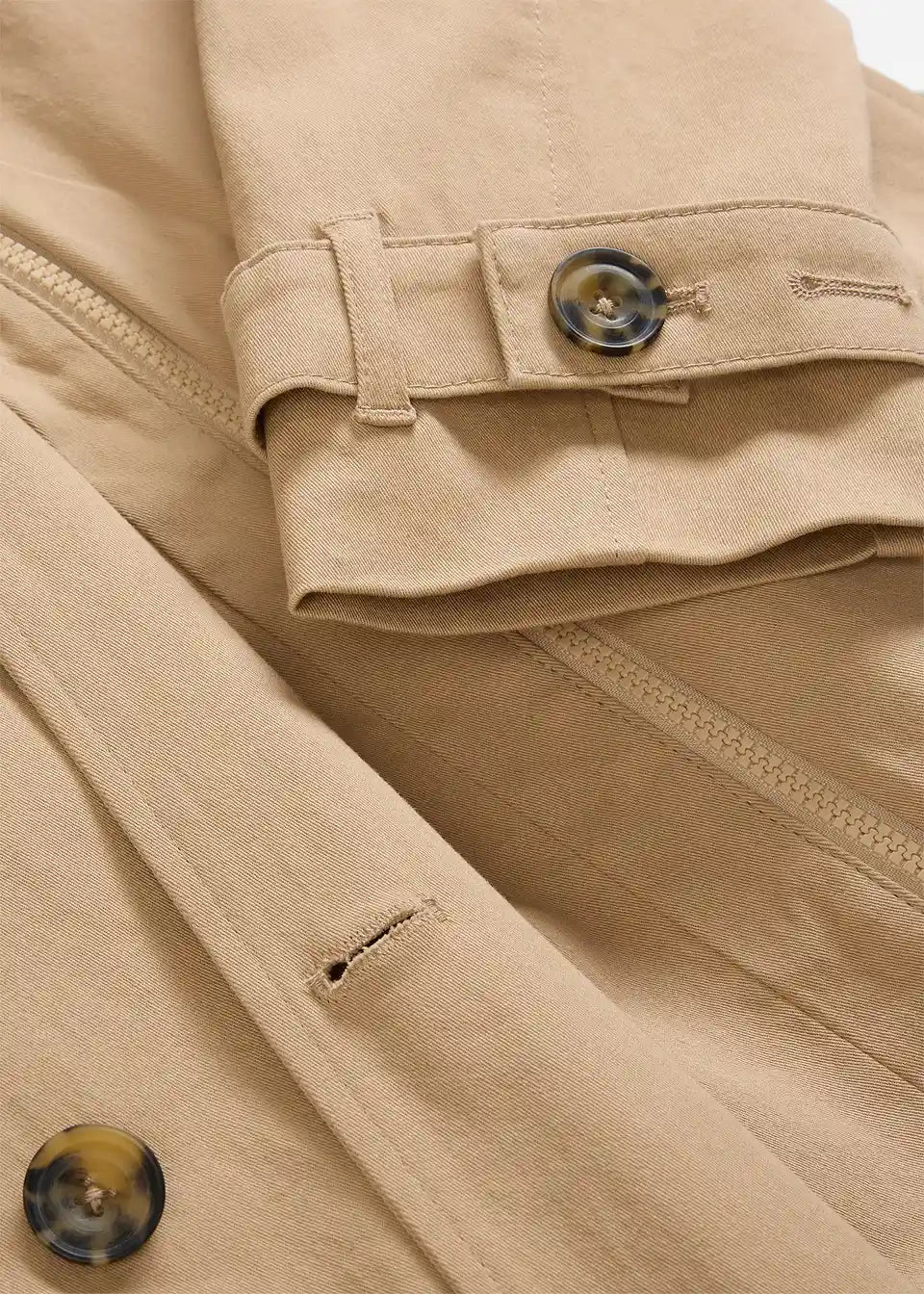 Unauffällige Reißverschlüsse in den Seitennähten bieten zusätzliche Bauchweite und ermöglichen das Tragen während und nach der Schwangerschaft. Der hochwertige Baumwollstoff ist wasserabweisend ausgerüstet. Mit Taschen, abnehmbarem Bindeband sowie verstellbaren Ärmelriegeln zum Schutz vor Kälte und Wind.