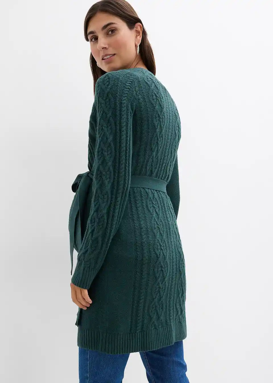 Extra lange Umstands-Strickjacke und Strickkleid aus Baumwoll-Mix