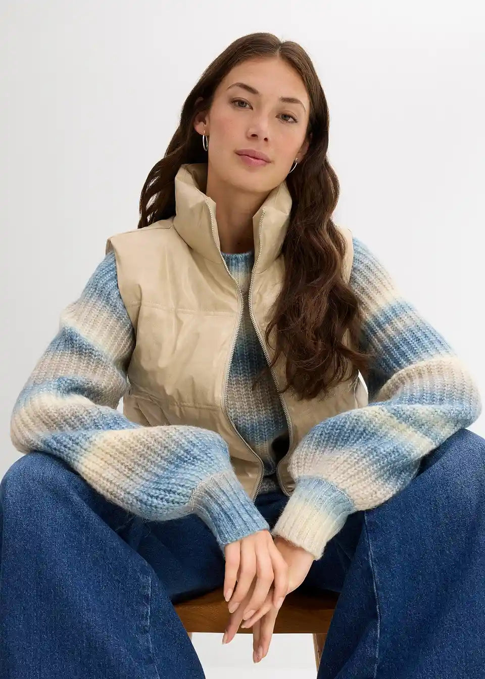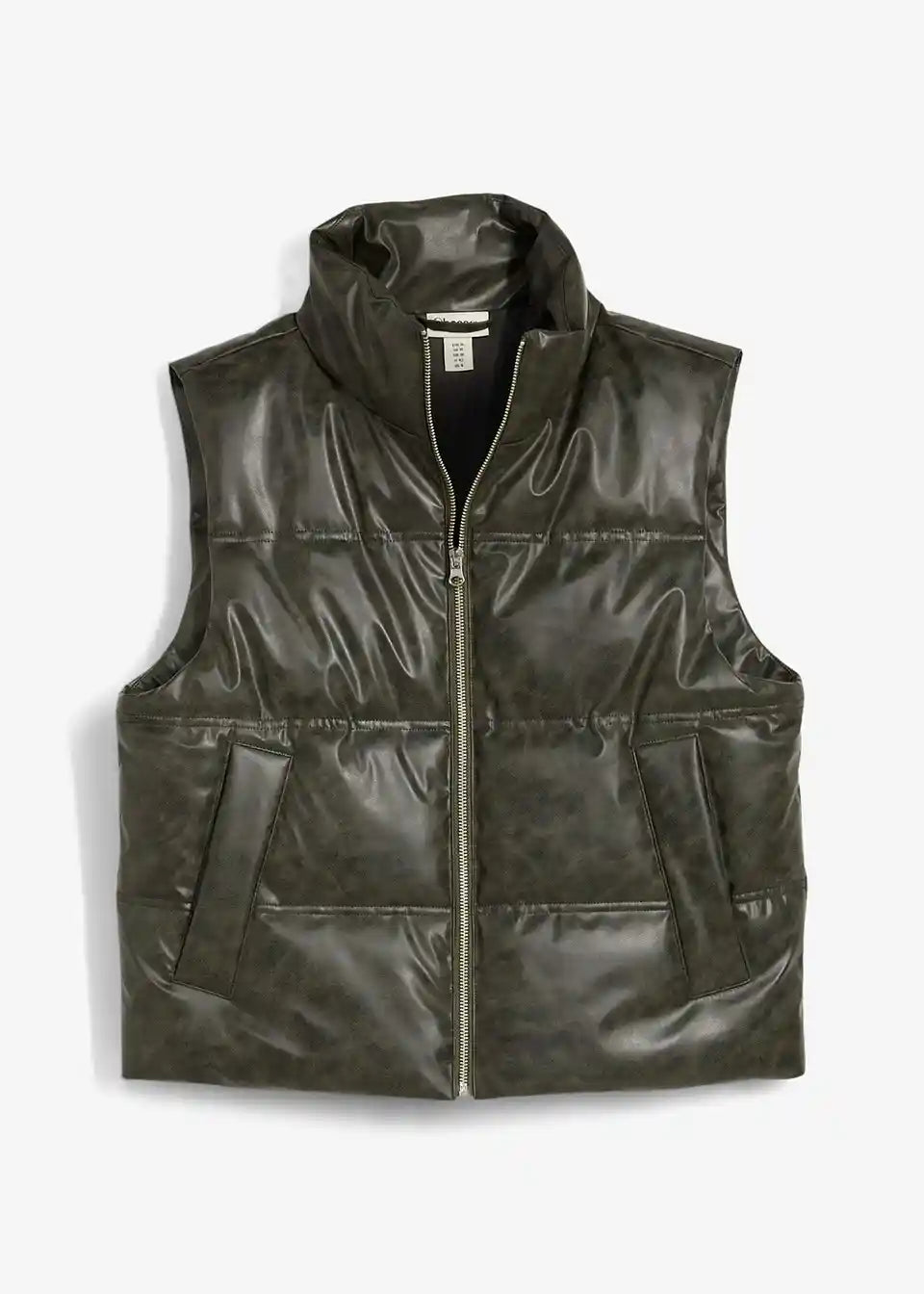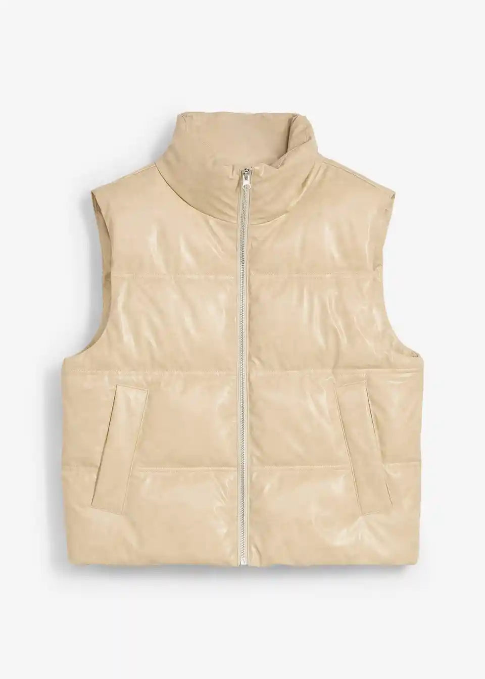Modische Steppweste aus Lederimitat in verwaschener Optik