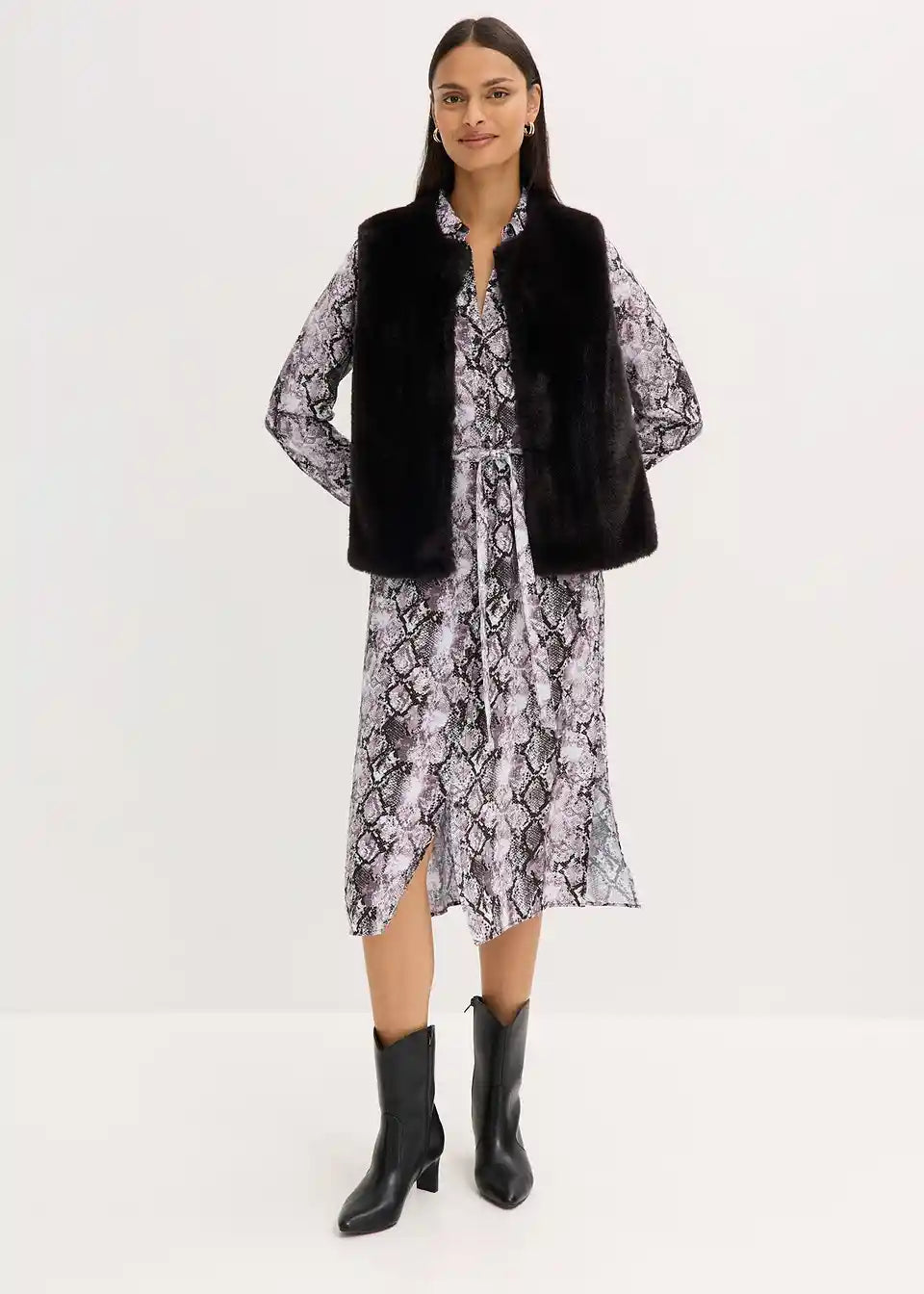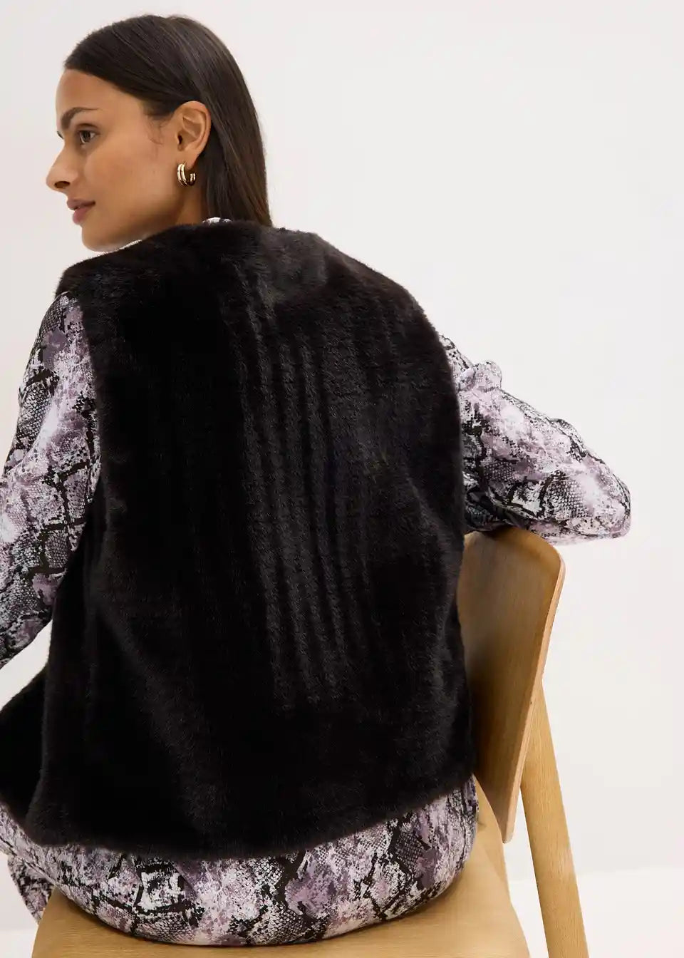 modische Fellimitat-Weste mit Haken- und Ösen-Verschluss vorne
