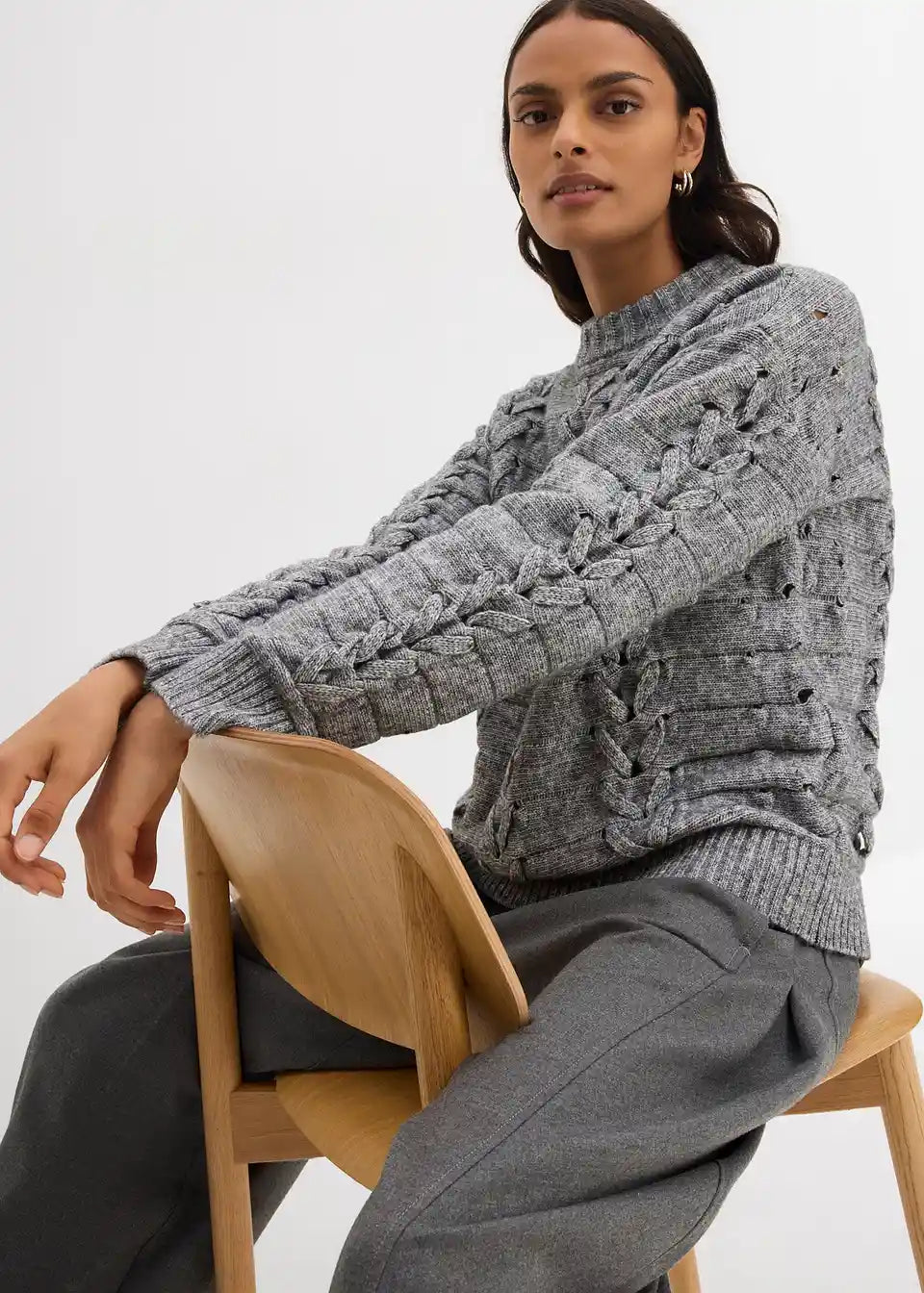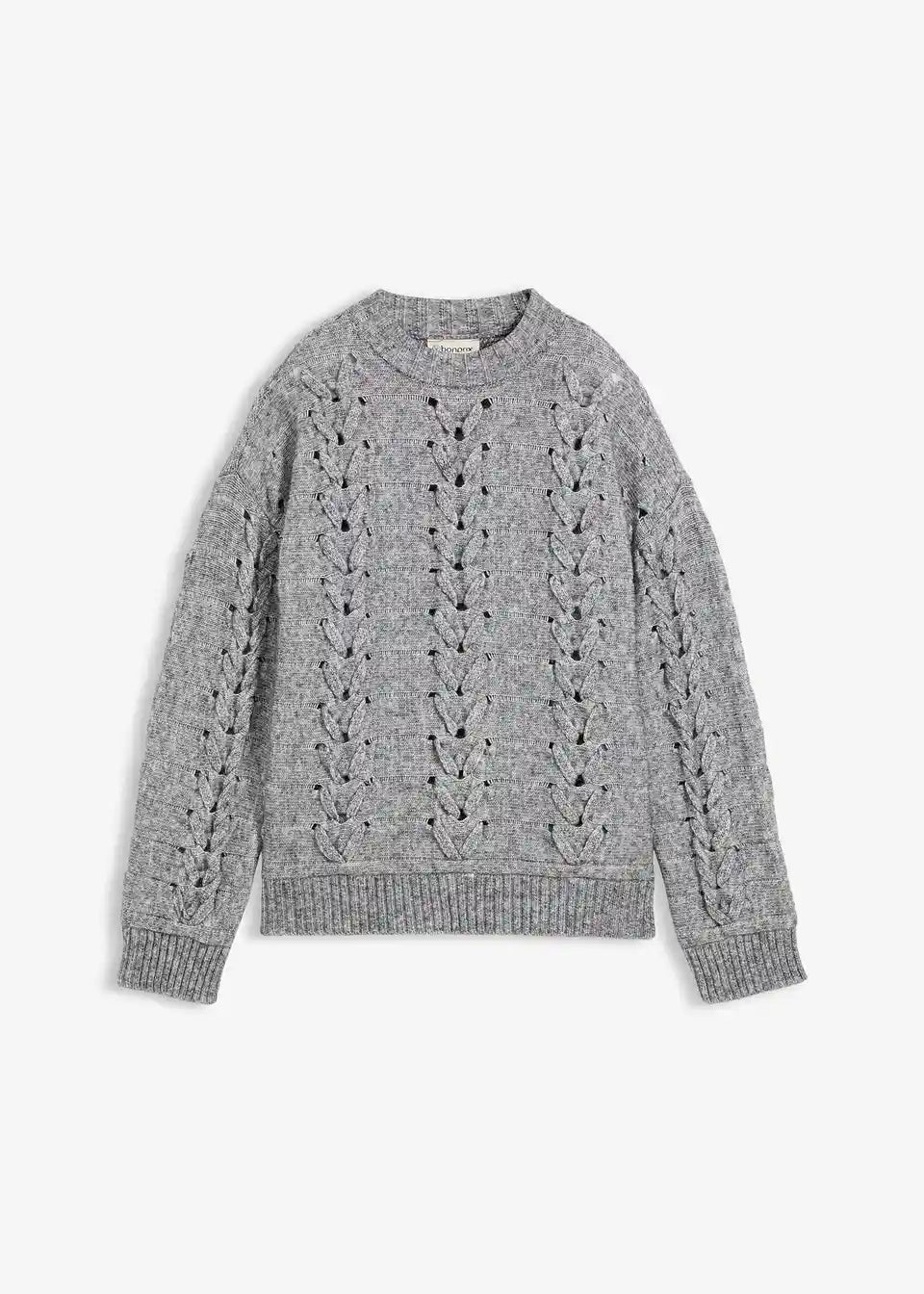 Grobstrick-Pullover mit Zopfmuster