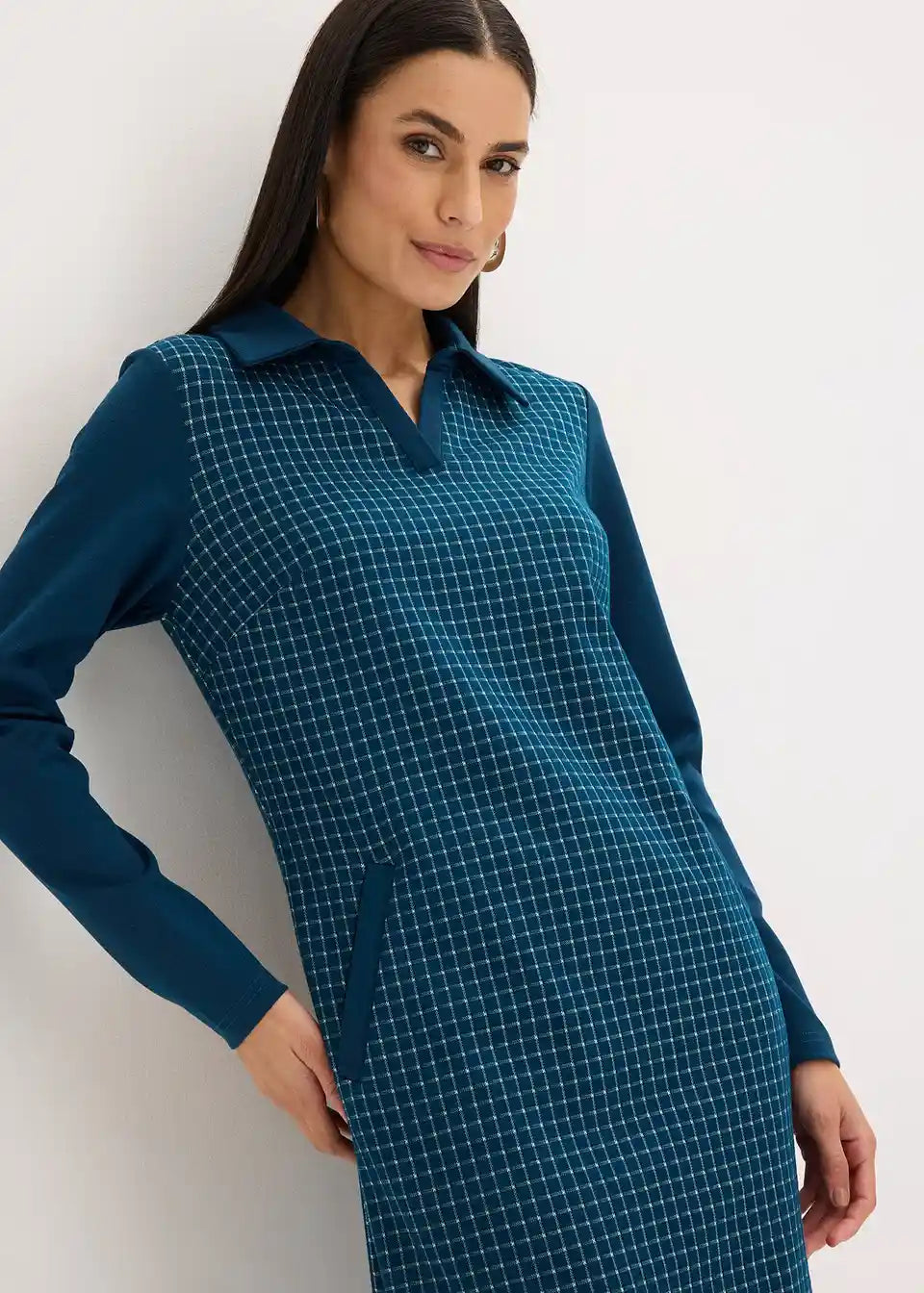 Jacquard Kleid mit Kontrastkragen