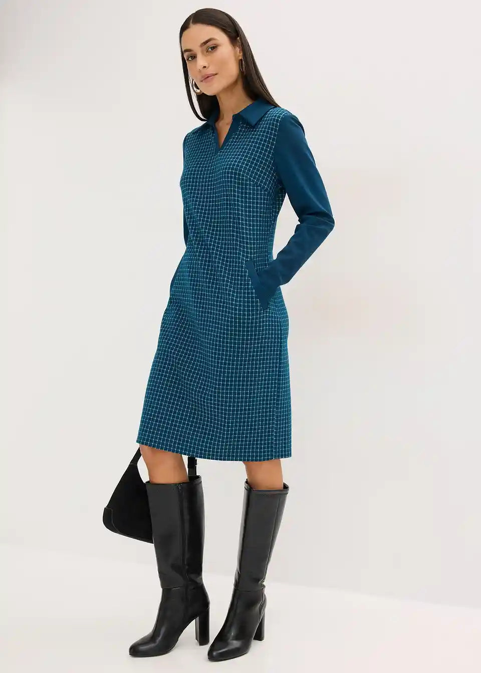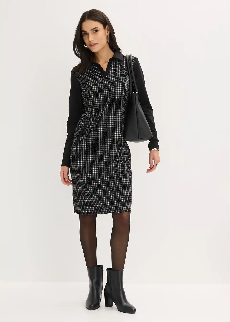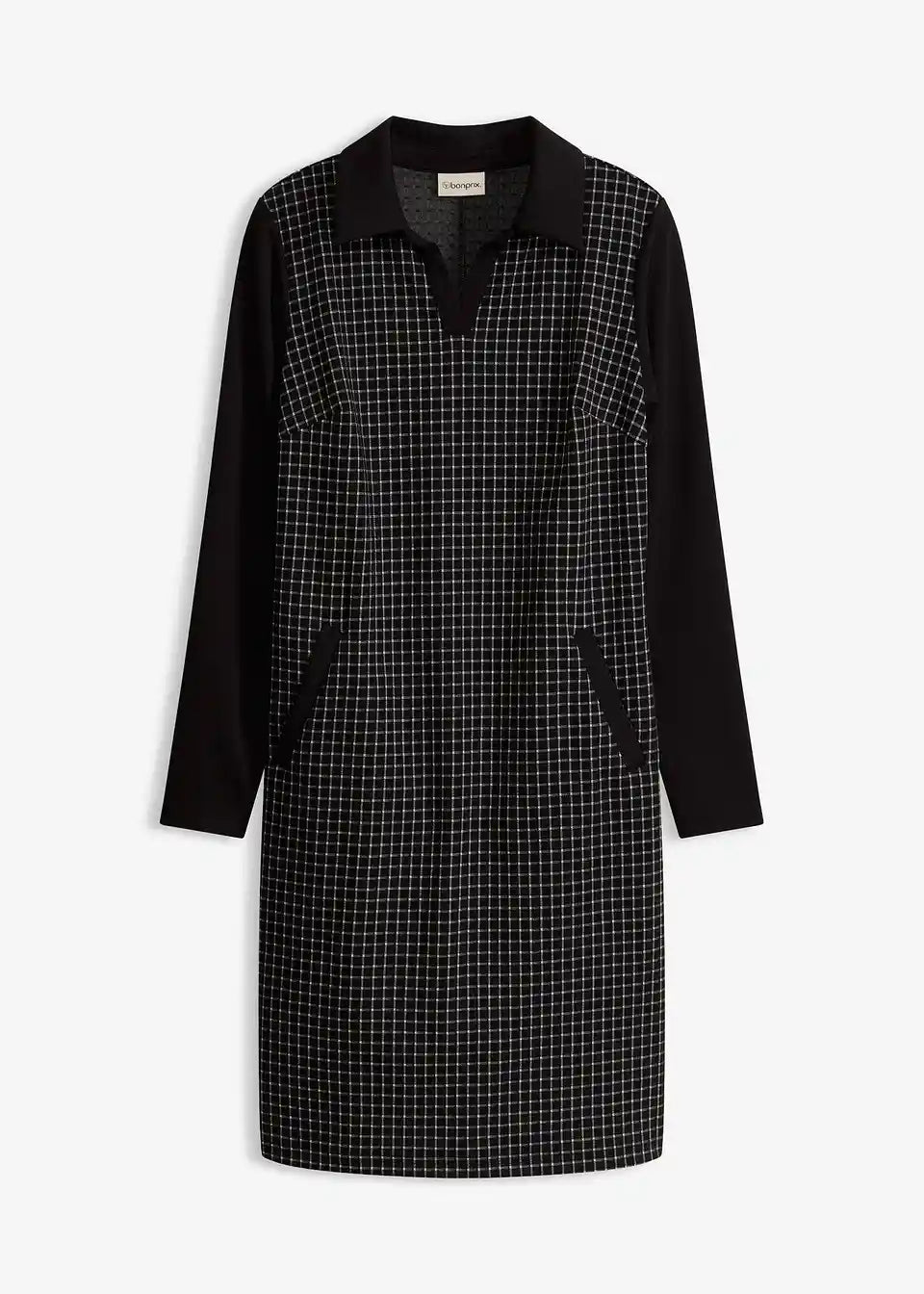 elegantes Jaquard-Kleid mit Kontrastkragen