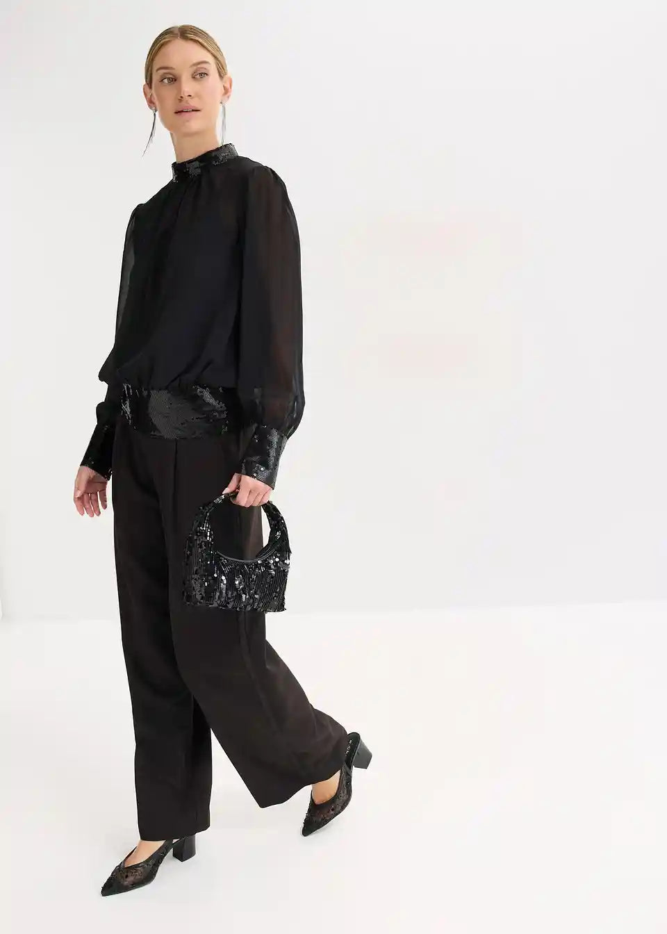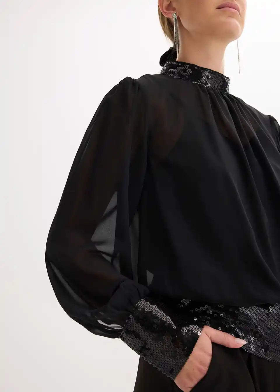 Modern und feminin: Bluse aus feinem Chiffon mit Futter und Pailletten-Einsatz