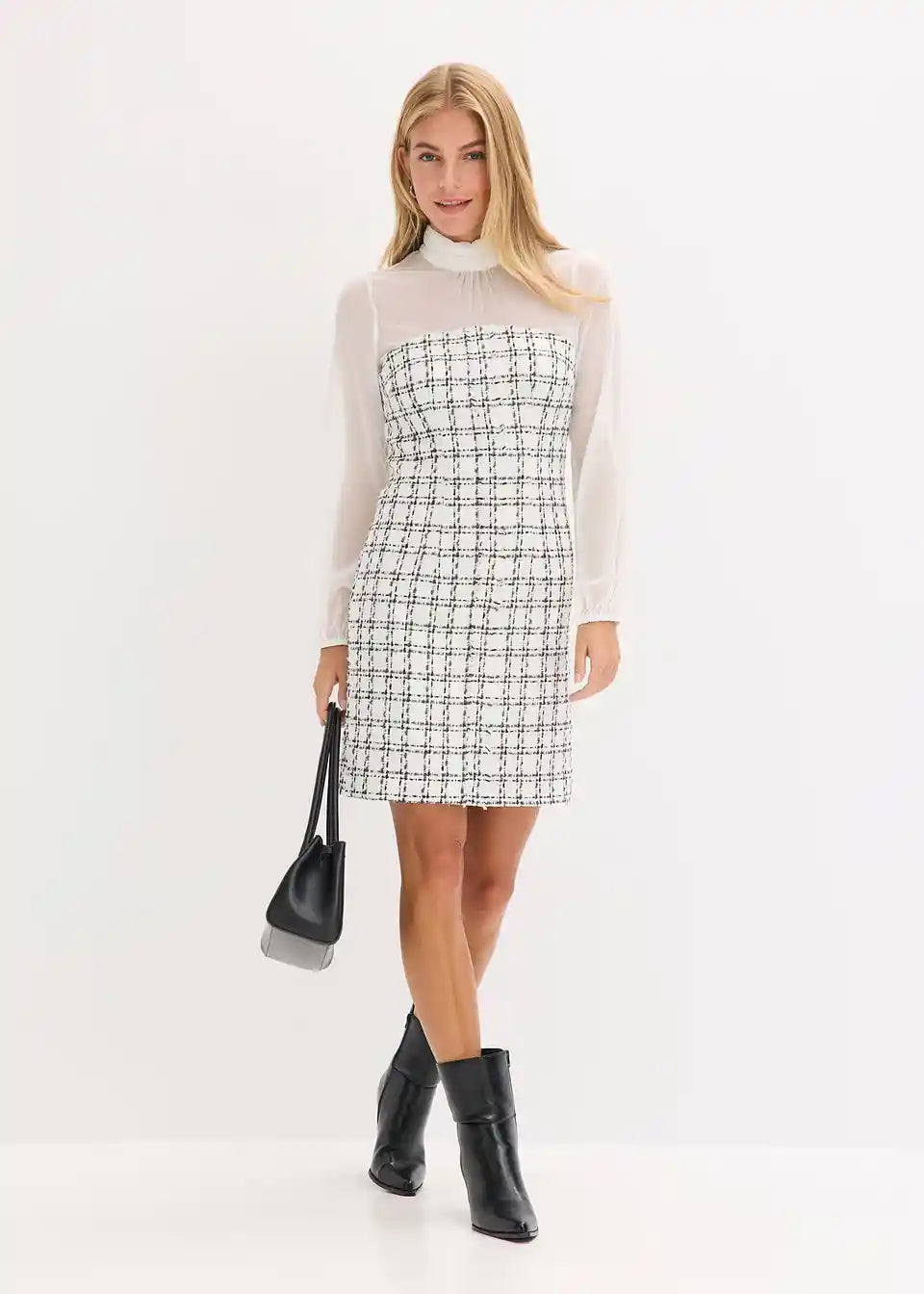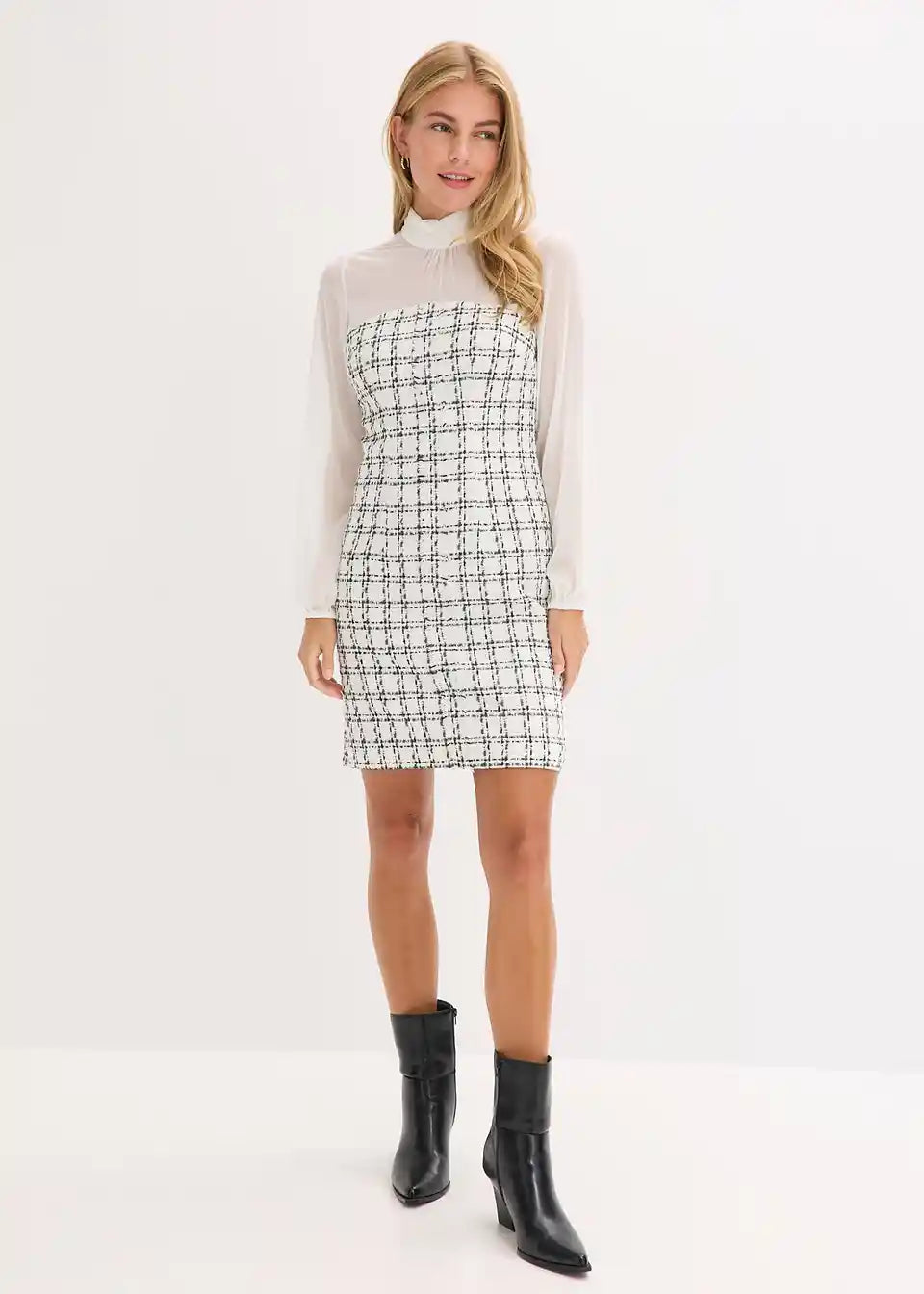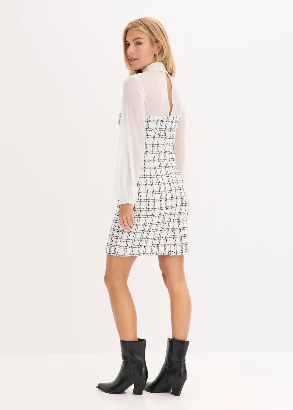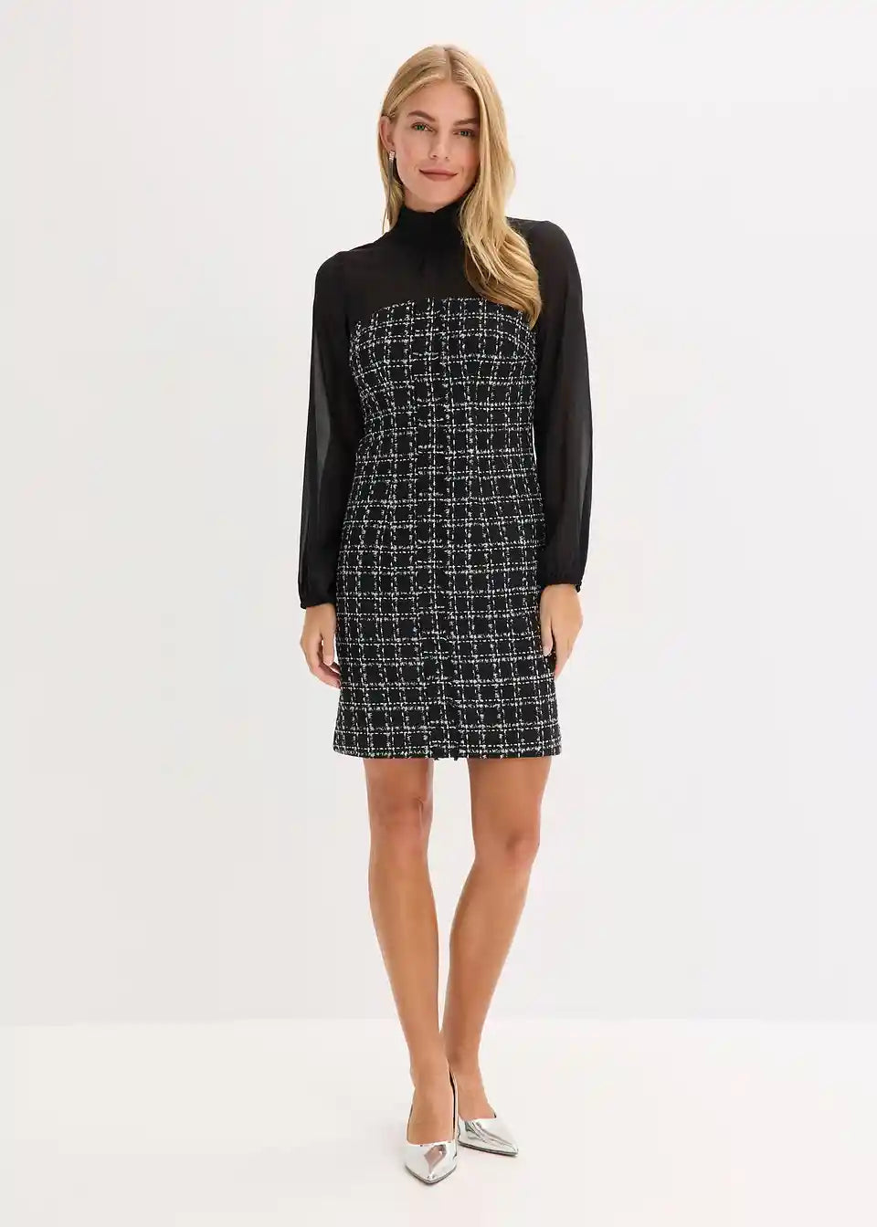 Minikleid aus Bouclé mit Chiffon Ärmeln