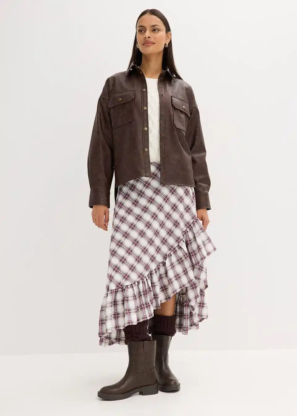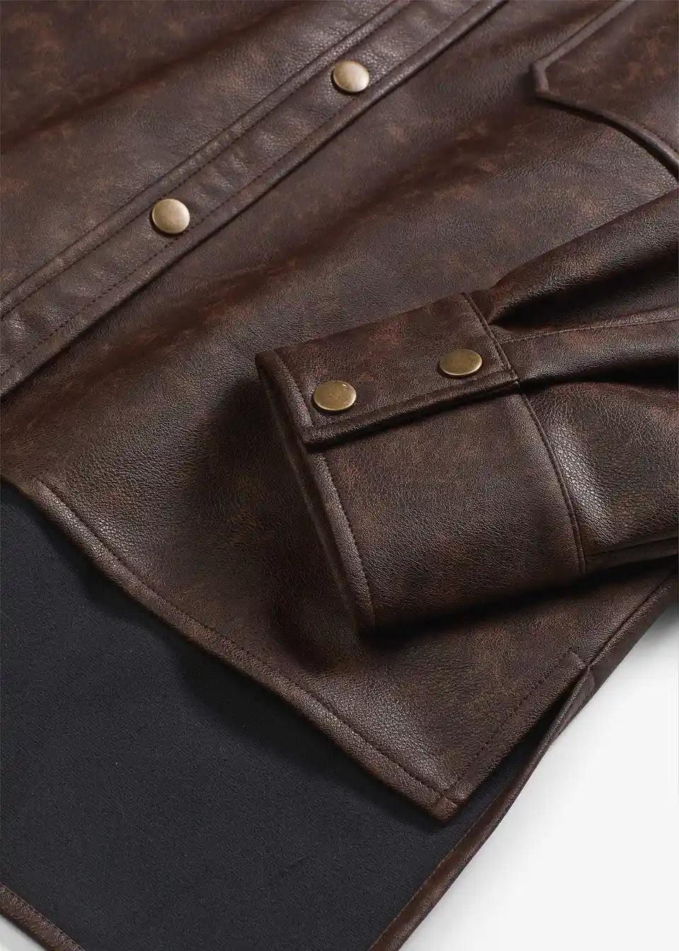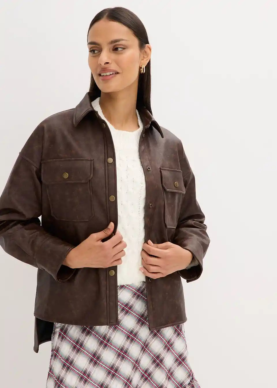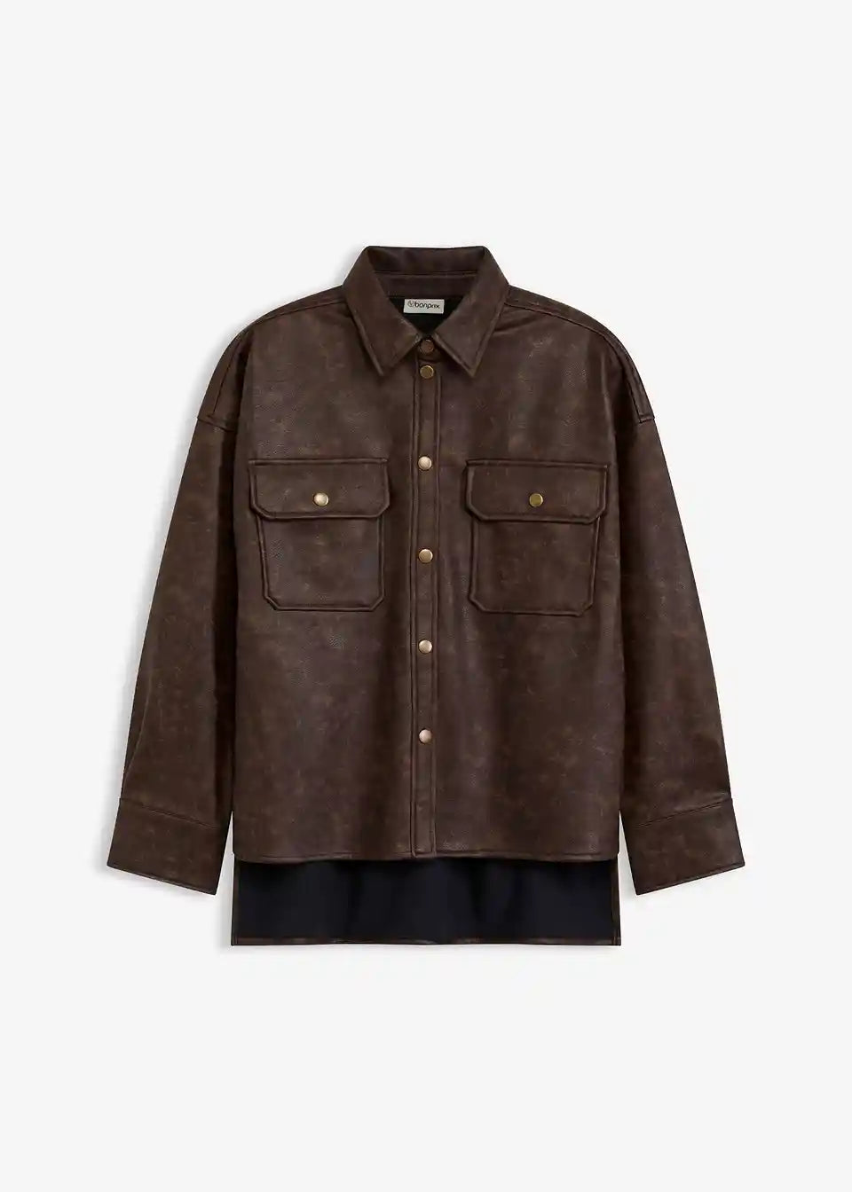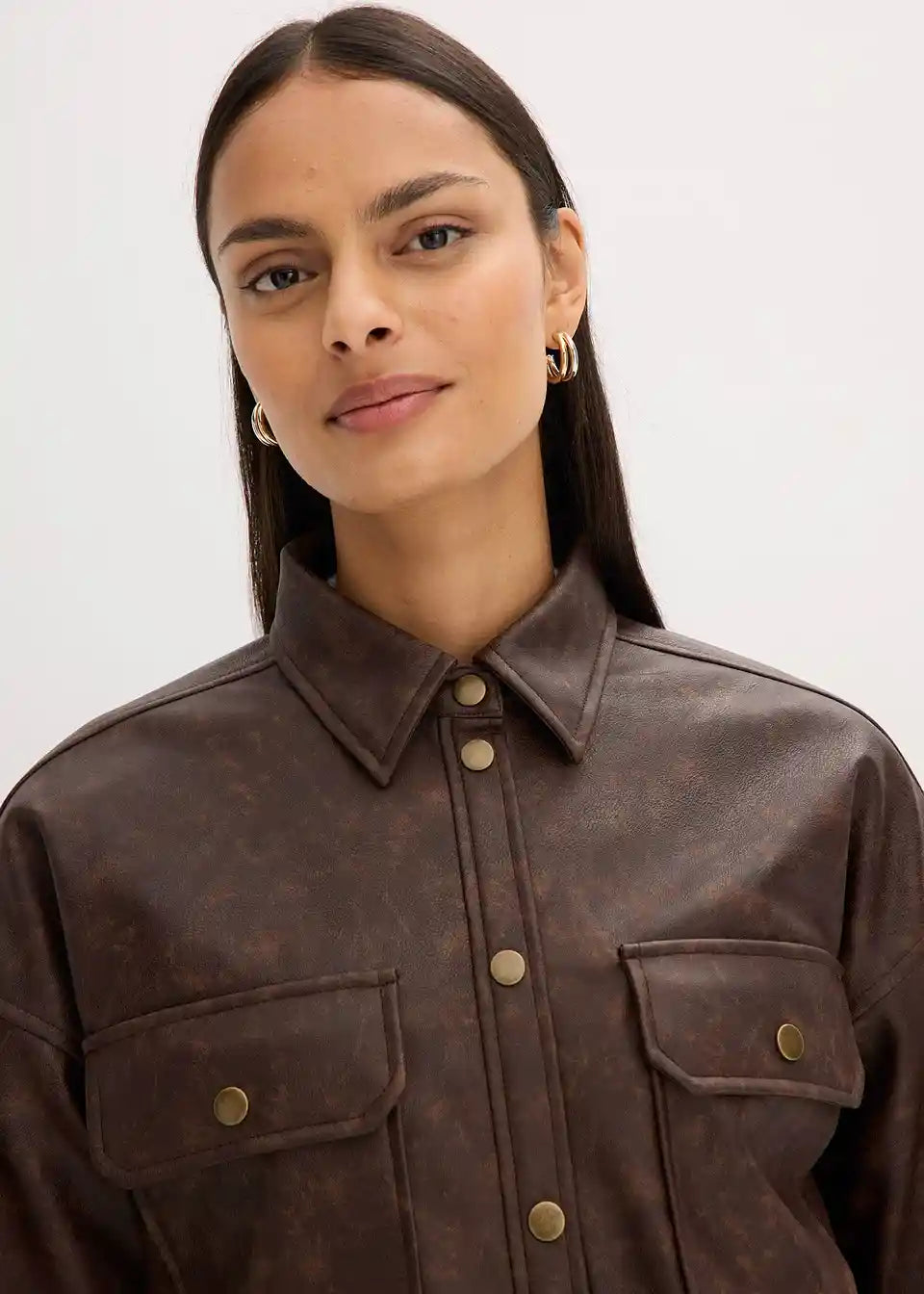 Lässiges Oversize Lederimitat-Hemd in Used-Optik