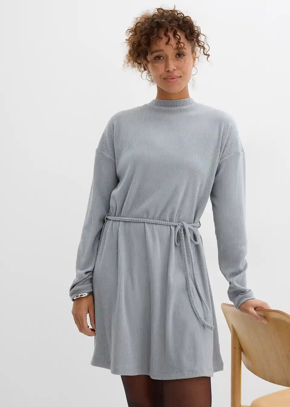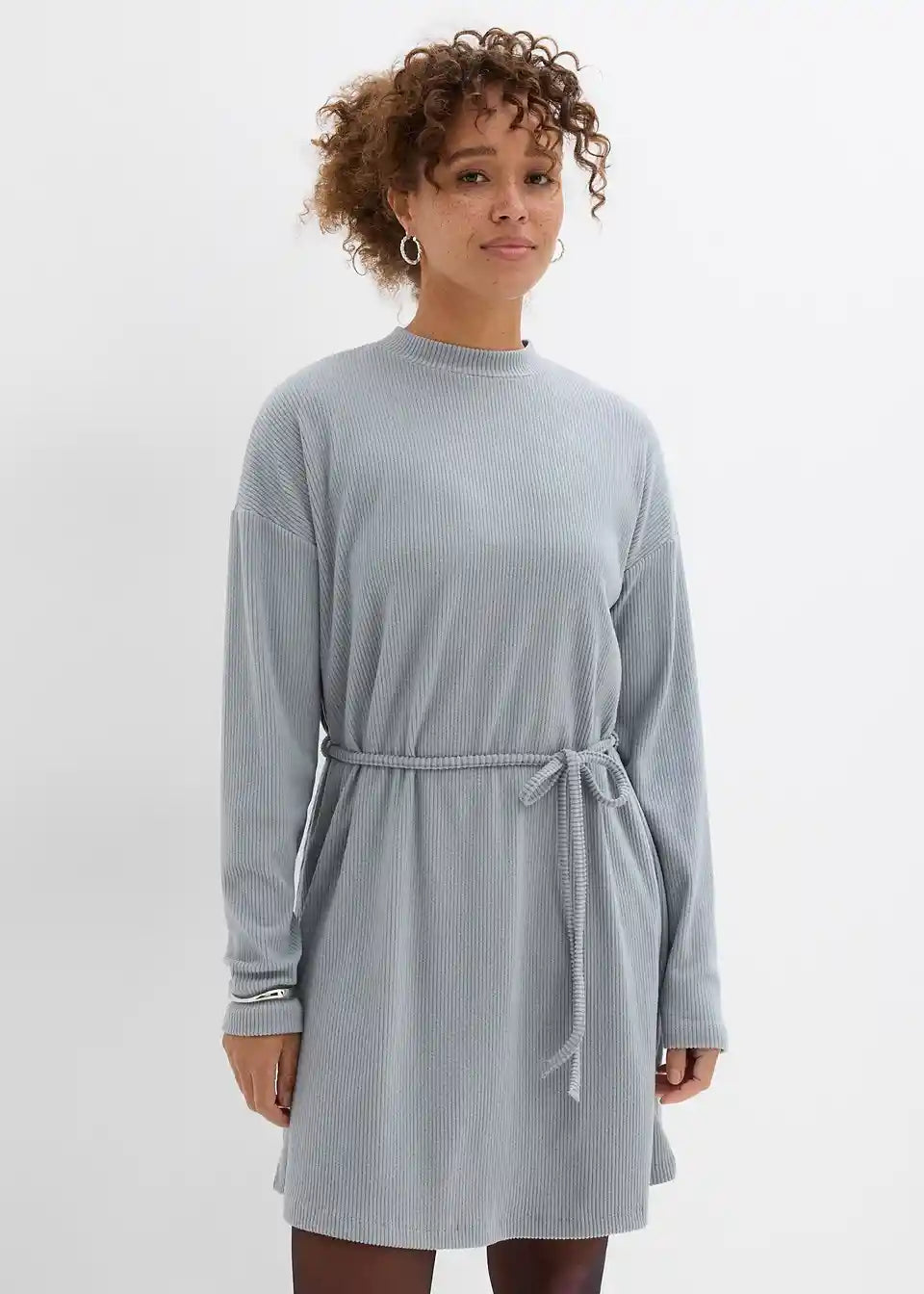 Geripptes Minikleid mit Bindegürtel